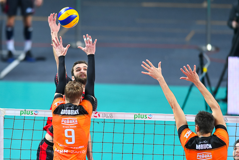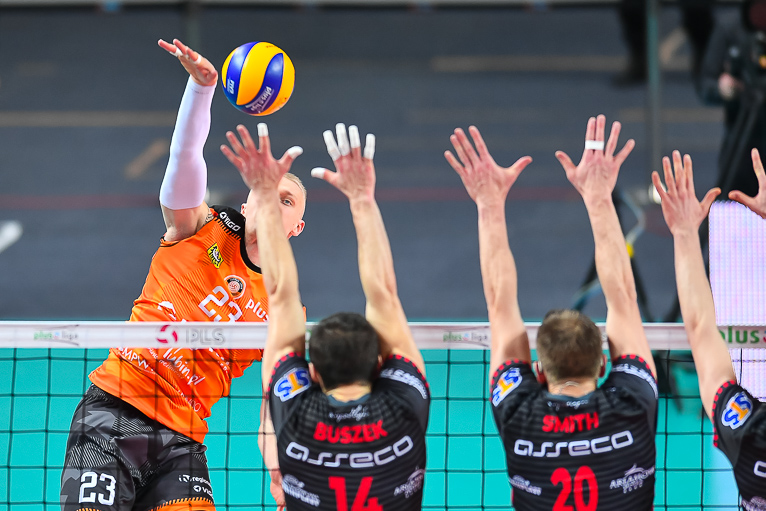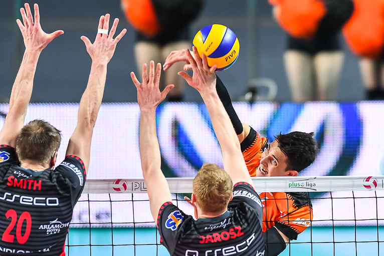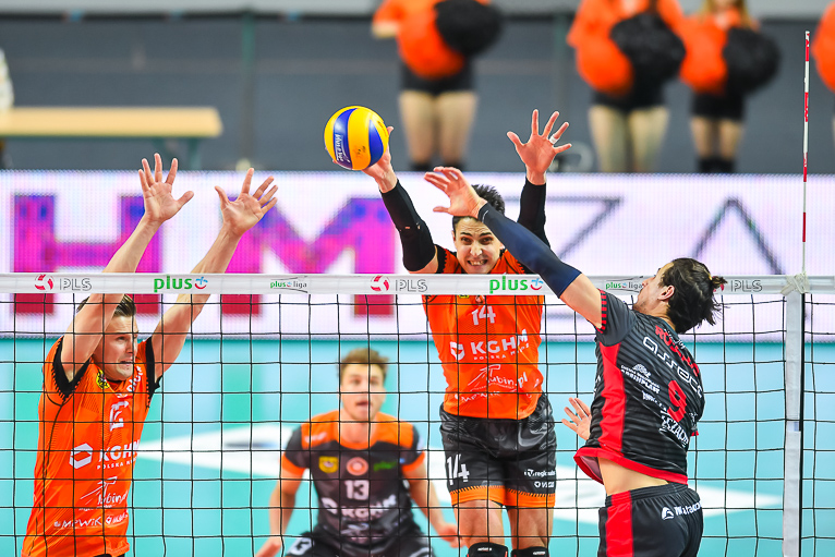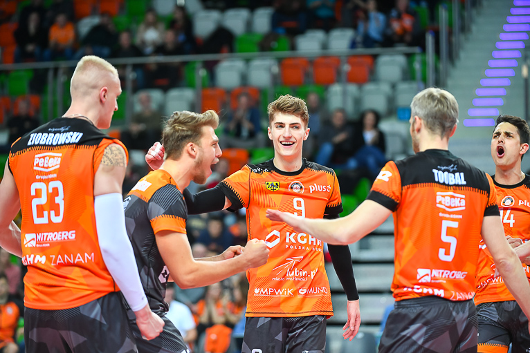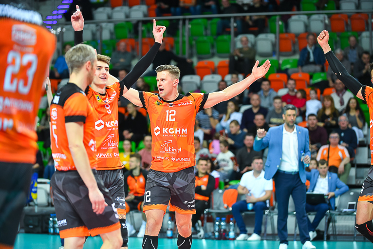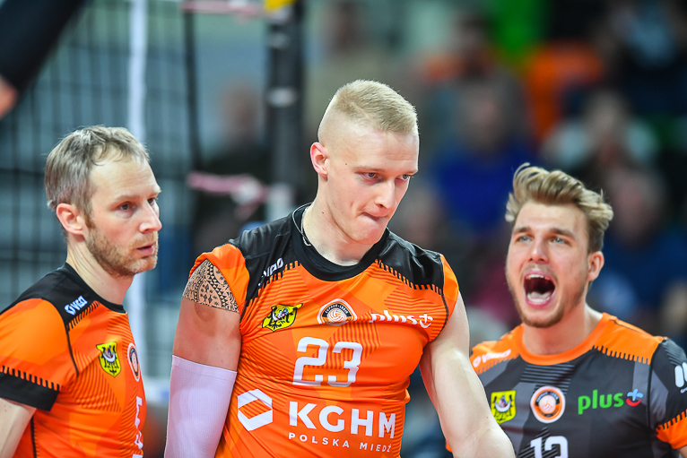 – Bardzo dobrze funkcjonowała nasza relacja na linii blok-obrona, było dużo wybloków. Bardzo mało procent mieli na swojej pierwszej akcji. My graliśmy mądrze i nie dawaliśmy im grać – podkreśla Jędrzej Gruszczyński, Libero Cuprum Lubin.