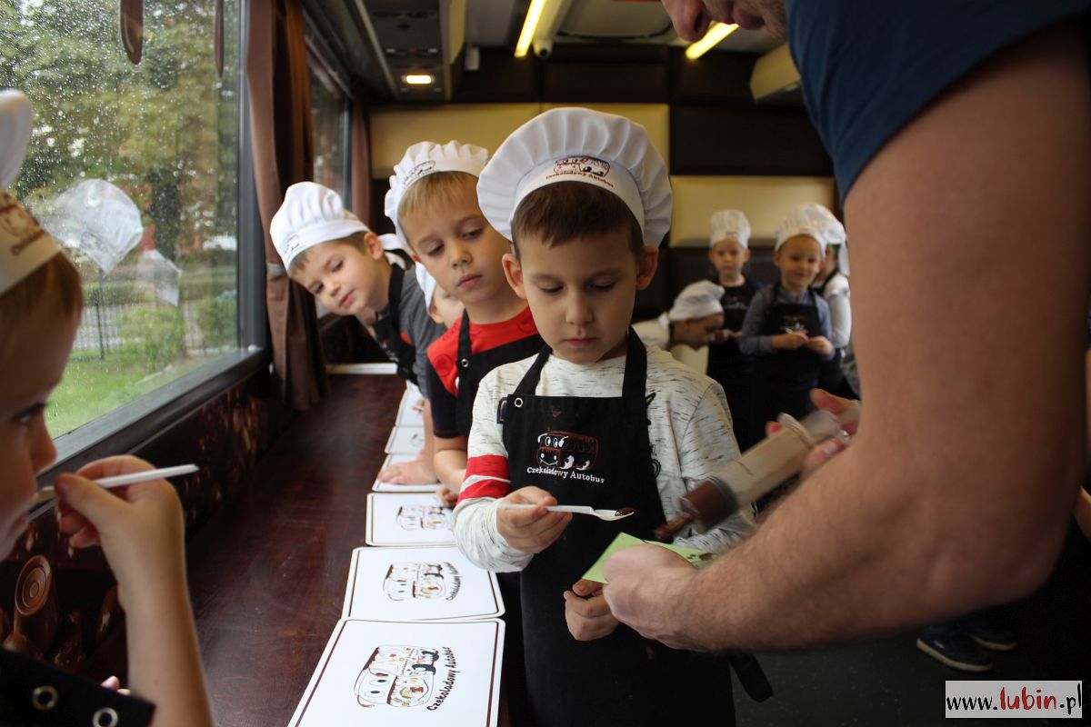 Przy lubińskim Przedszkolu nr 4 zaparkował bardzo nietypowy, bo czekoladowy autobus. Dzięki niemu dzieci mogły się sporo dowiedzieć o tej słodkości, zrobić własną czekoladkę, a także podegustować.