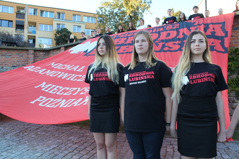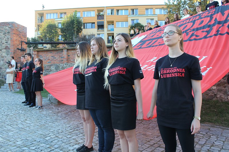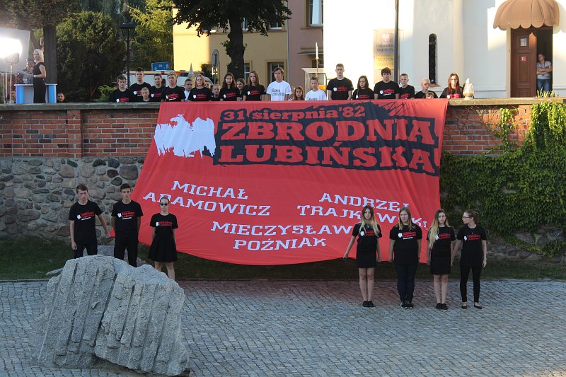 W tym roku o wydarzeniach z sierpnia 1982 roku przypomniał zinterpretowany przez znanego aktora Andrzeja Seweryna i odtworzony pod pomnikiem esej „Sierpień wolności”, który został napisany przez lubinianina Andrzeja Jaworskiego. W oczach wielu zakręciła się łza. Gdy kibice i strażacy odpalili race, a wolontariusze rozwinęli transparent z napisem „Zbrodnia Lubińska” i nazwiskami tych, którzy zginęli, niejednego przeszedł dreszcz.