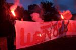 Po oficjalnym przemówieniu szefa stowarzyszenia, kibice rozwinęli transparenty, odpalili race i odśpiewali hymn Polski.