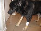 Na przedniej łapie miał dużą ranę ciętą. Być może zerwał się komuś z łańcucha. Niewykluczone też, że mógł utkwić we wnykach.