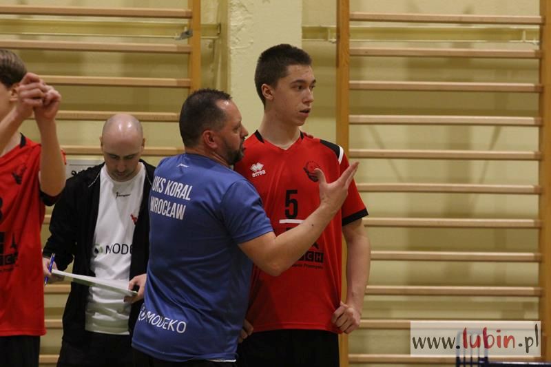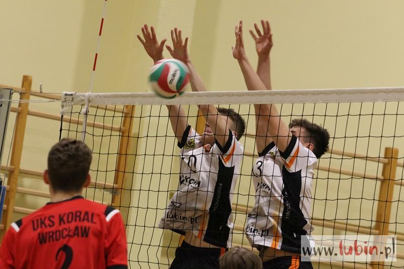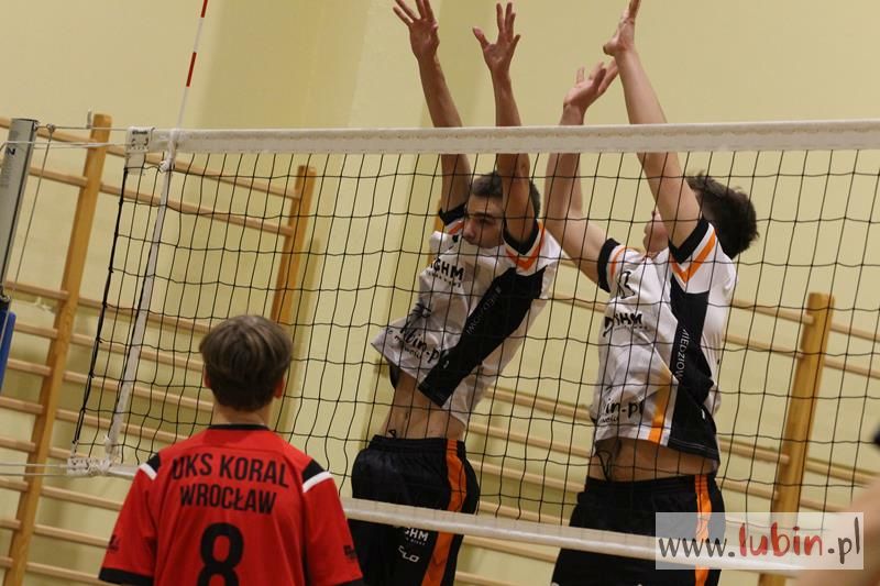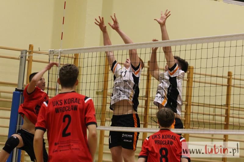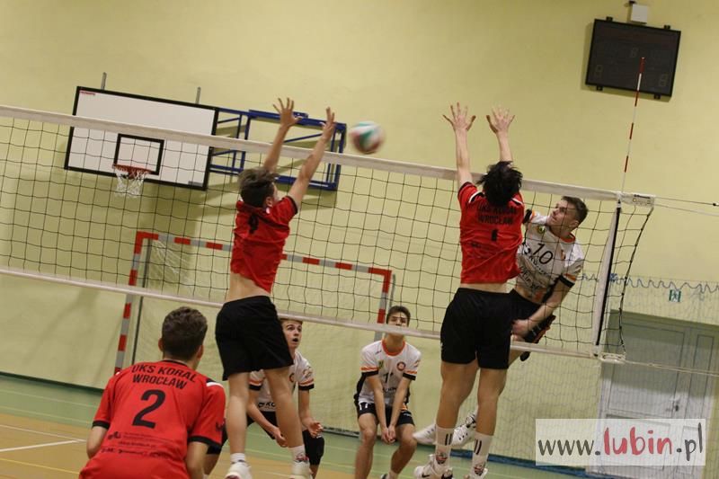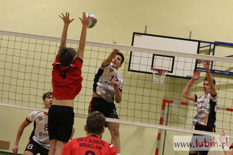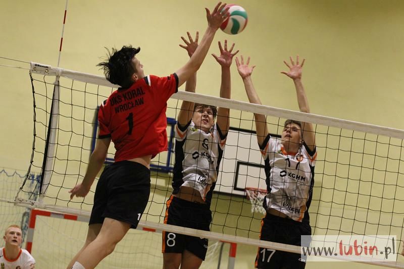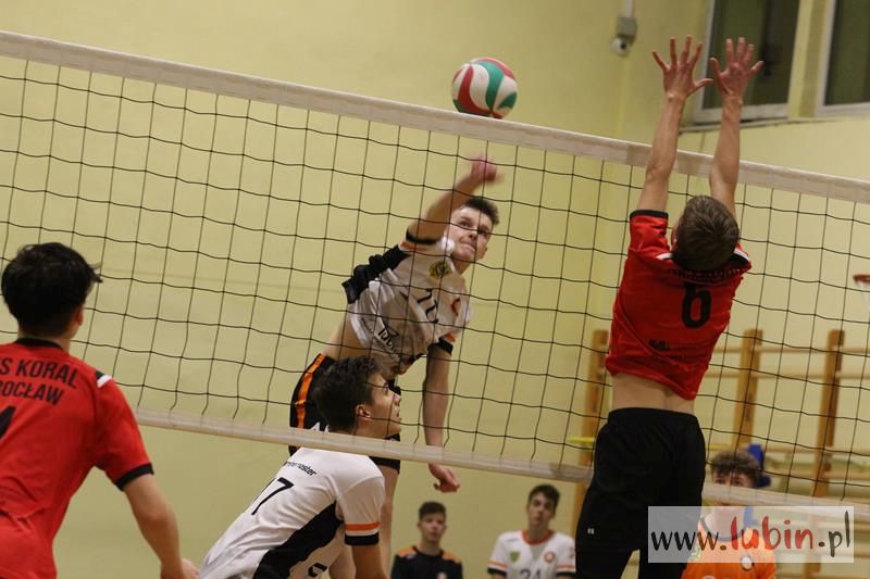 Piąta seria spotkań siatkarskiej Ligi Juniorów Młodszych to dla ekipy Cuprum Lubin mecz na parkiecie przy ul. Sybiraków 11. We własnej sali lubinianie od samego początku bronili swojej twierdzy świetnym podwójnym blokiem, a w kontrze nie raz zaskakiwali Koral Wrocław „torpedami” z czwartej strefy. Niestety dla nich górę wzięły emocje, które miały duży wpływ na końcowy rezultat.