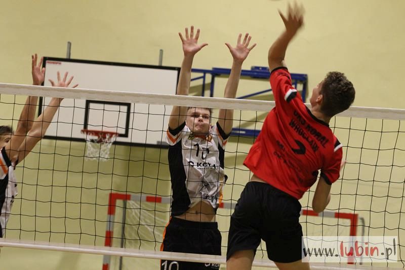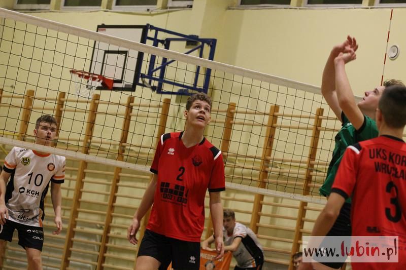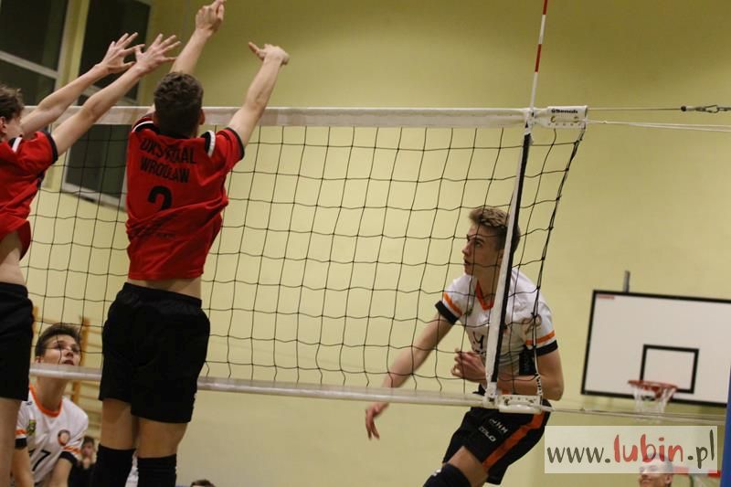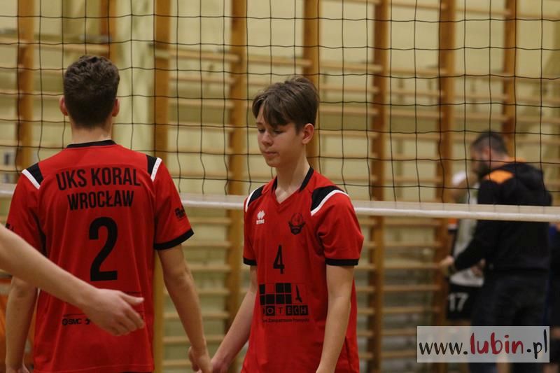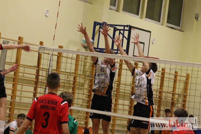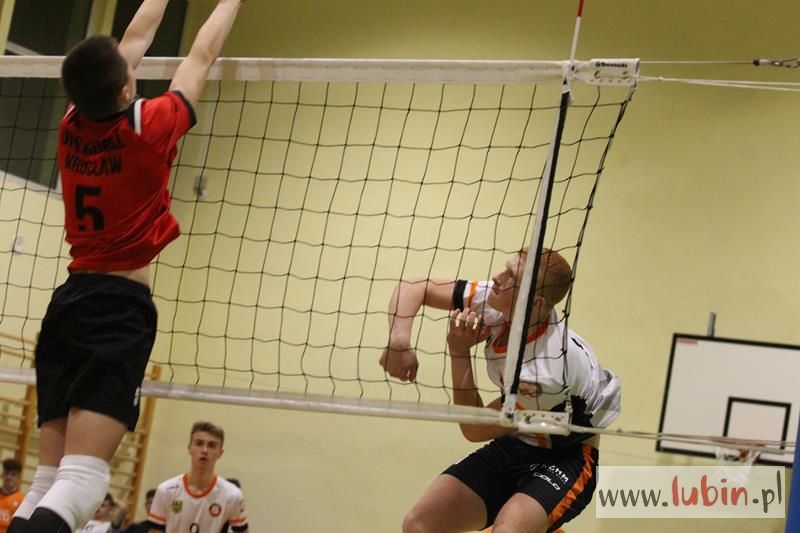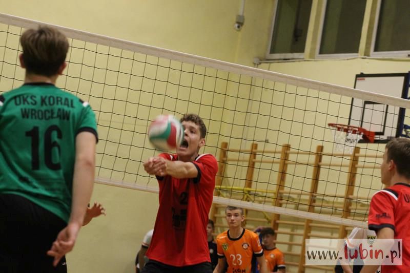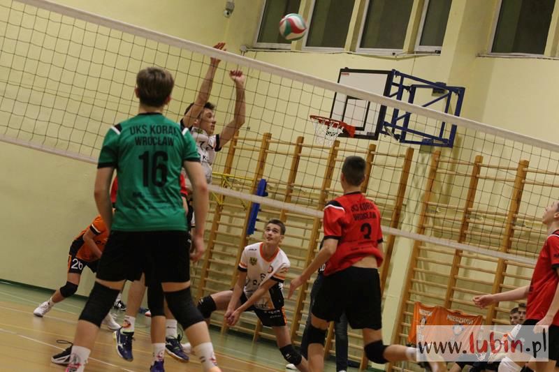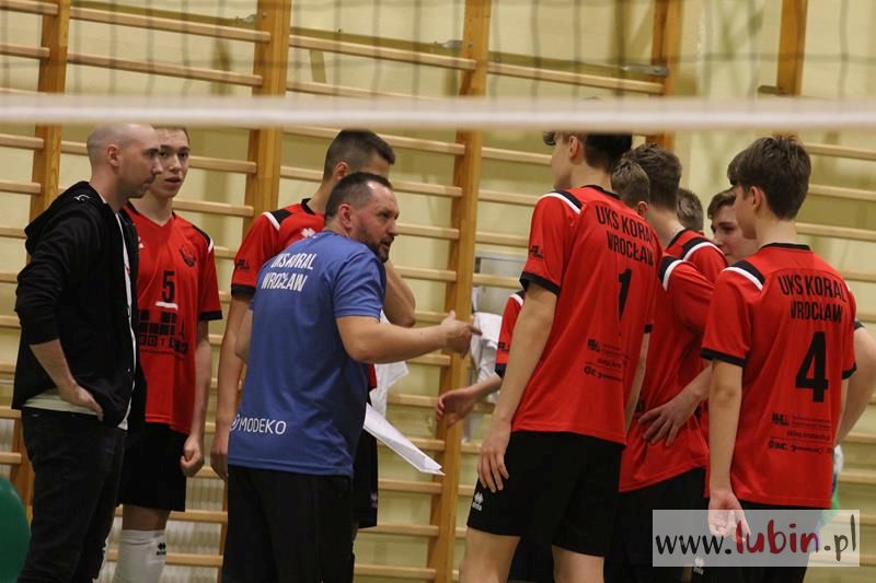 Piąta seria spotkań siatkarskiej Ligi Juniorów Młodszych to dla ekipy Cuprum Lubin mecz na parkiecie przy ul. Sybiraków 11. We własnej sali lubinianie od samego początku bronili swojej twierdzy świetnym podwójnym blokiem, a w kontrze nie raz zaskakiwali Koral Wrocław „torpedami” z czwartej strefy. Niestety dla nich górę wzięły emocje, które miały duży wpływ na końcowy rezultat.