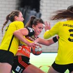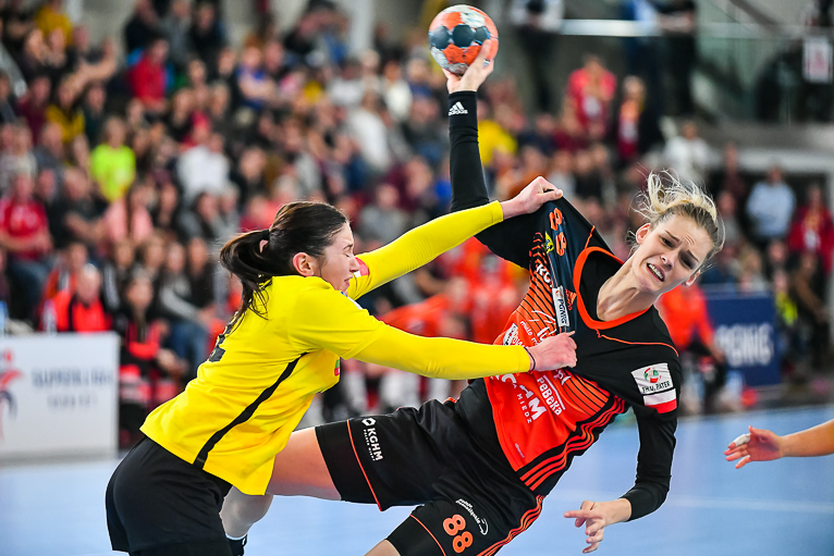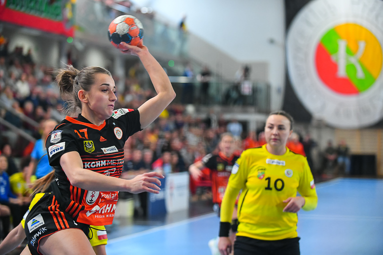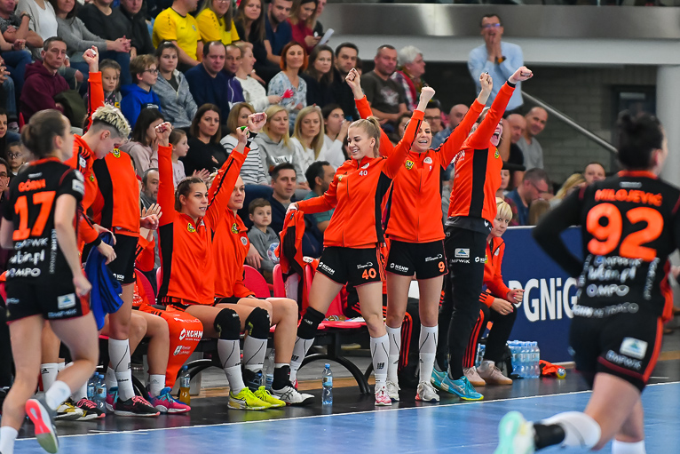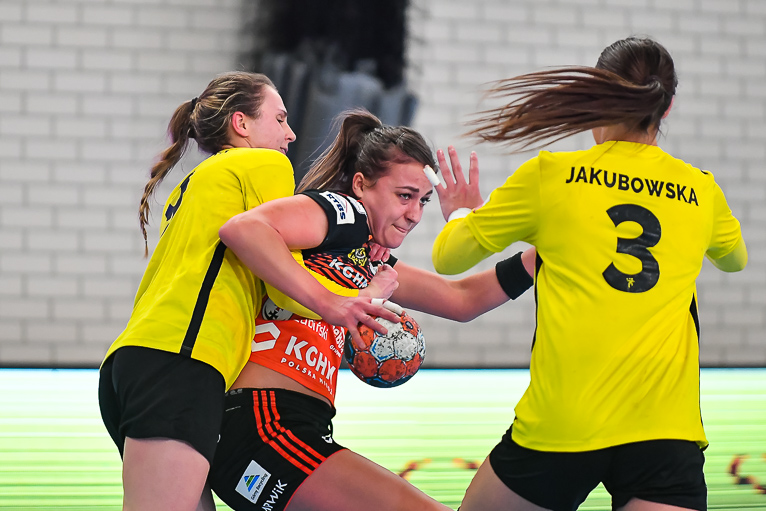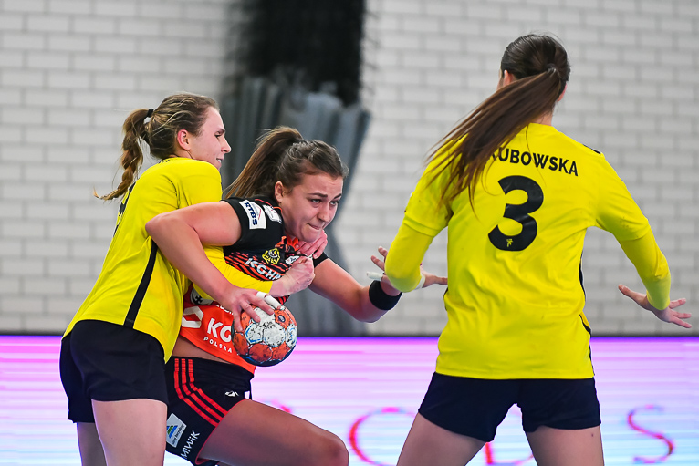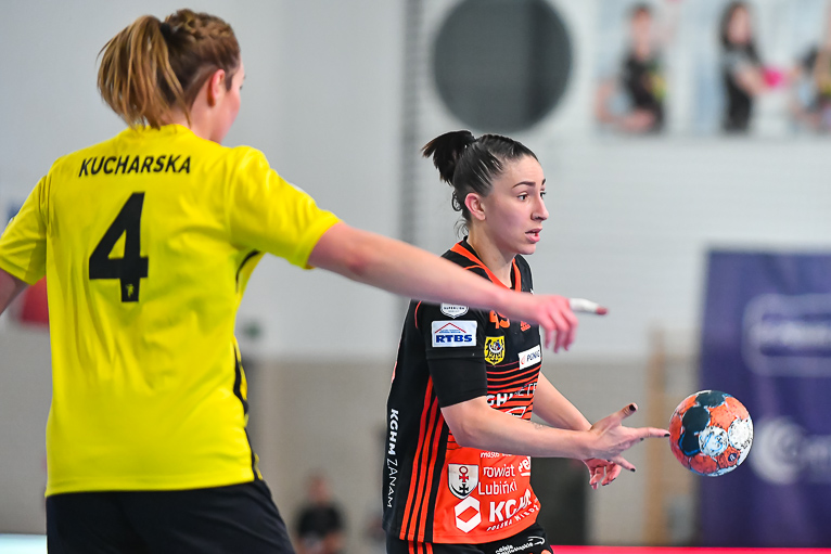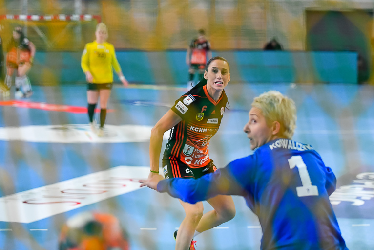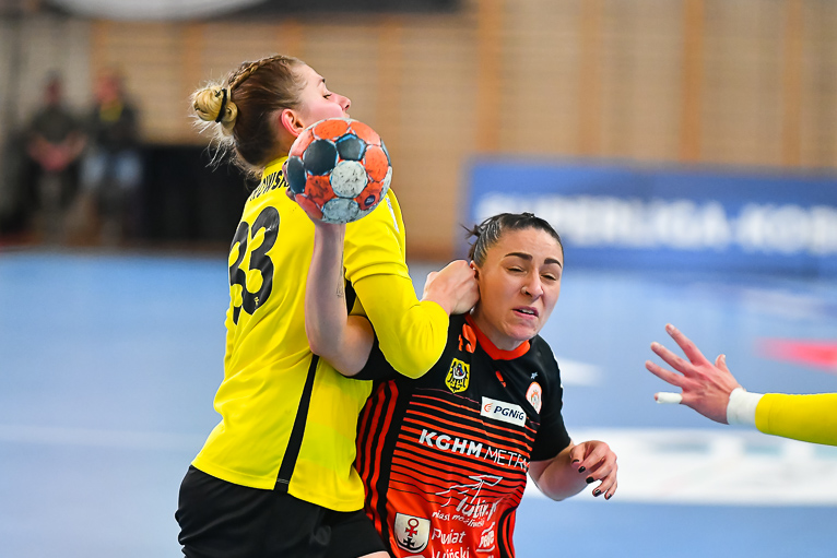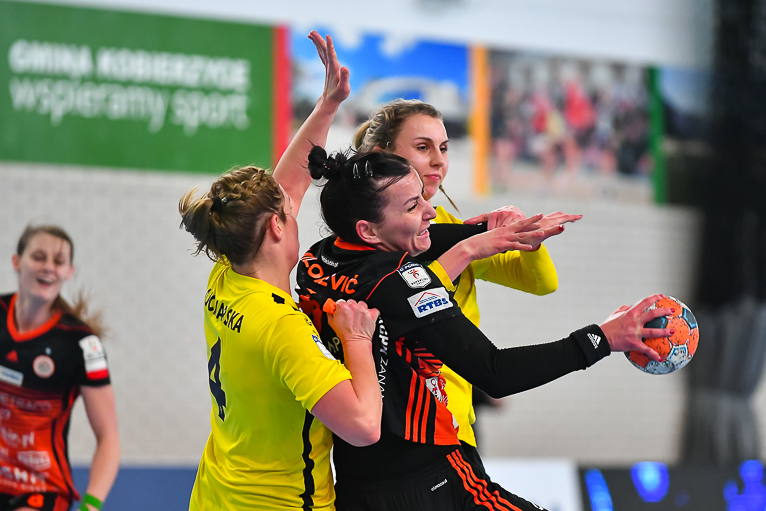 Po zmianie stron mieliśmy prawdziwy festiwal strzelecki. W niecałe cztery minuty kibice zobaczyli aż siedem trafień. Na boisku pojawiła się Emilia Galińska i to z nią defensywa gospodyń miała największy problem. Wynik oscylował wokół czterech bramek. Z upływem czasu przewaga przyjezdnych stawała się coraz bardziej widoczna. Znakomite wejście zaliczyła także Daria Zawistowska, po rzucie której różnica wynosiła już 8 oczek. Po drugiej stronie dobrze spisywała się Andjela Ivanović. W końcówce starcia kobierzyczanki złapały trochę wiatru w żagle i ich gra wyglądała lepiej, ale nie wystarczyło to, aby odwrócić losy pojedynku. Spotkanie zakończyło się wynikiem 25-28.