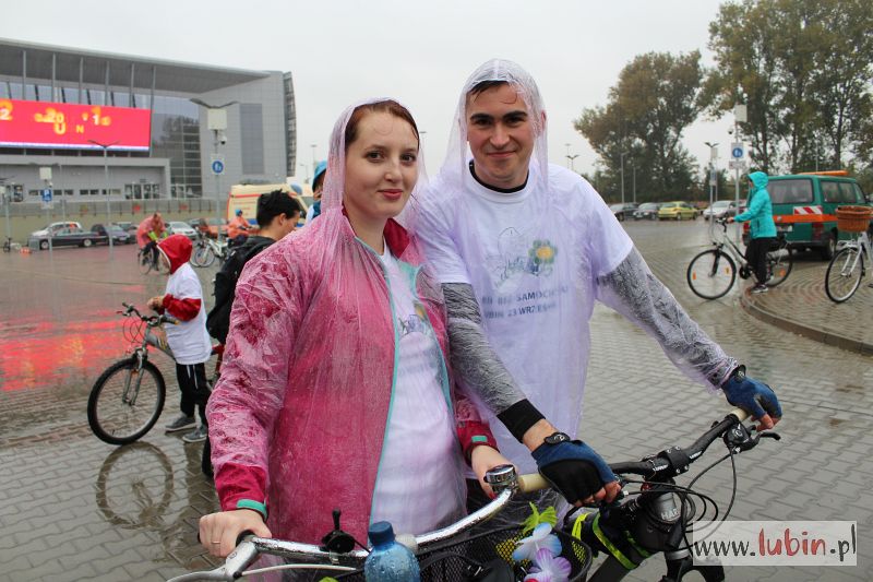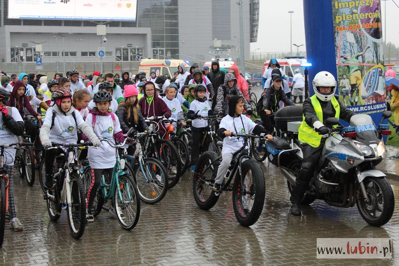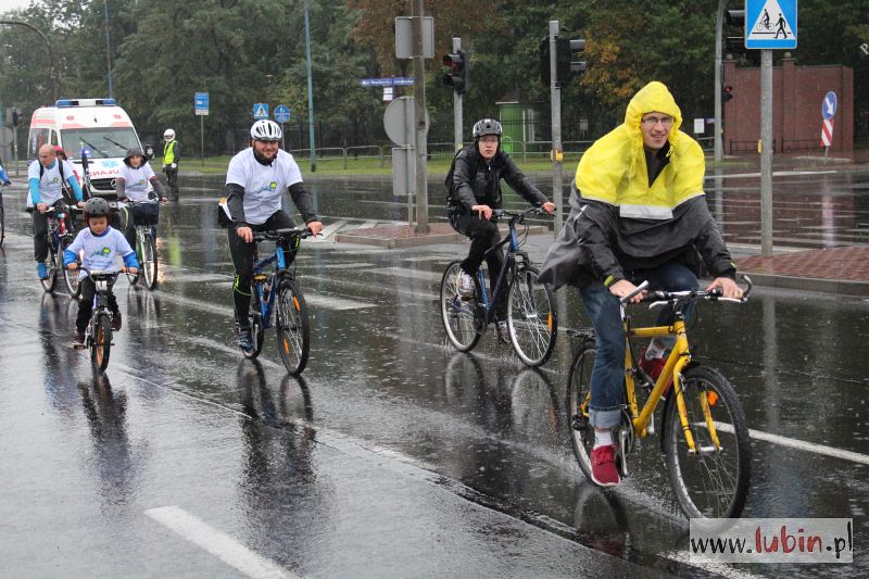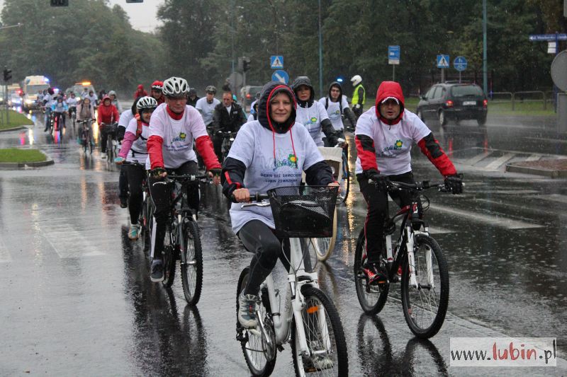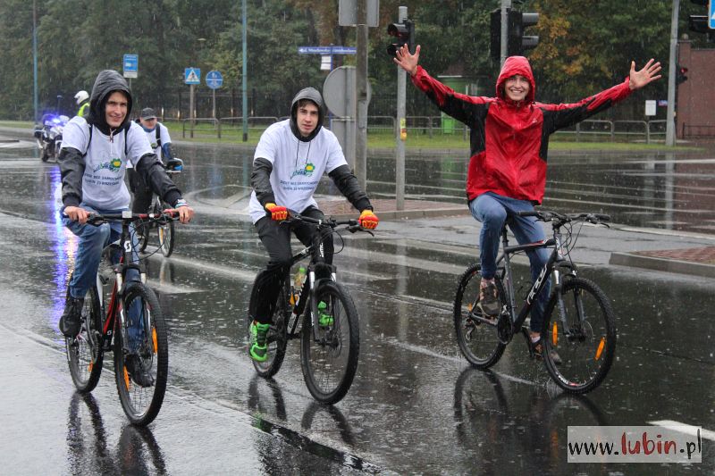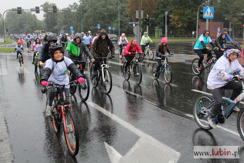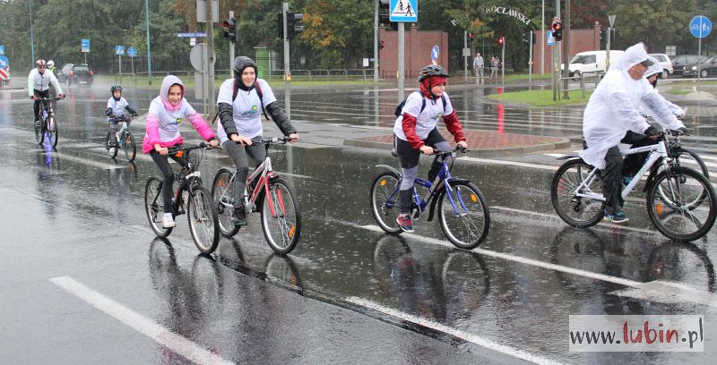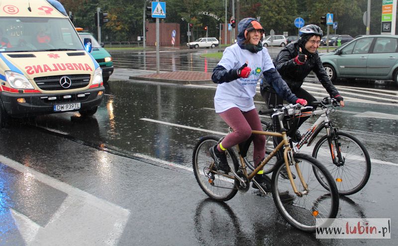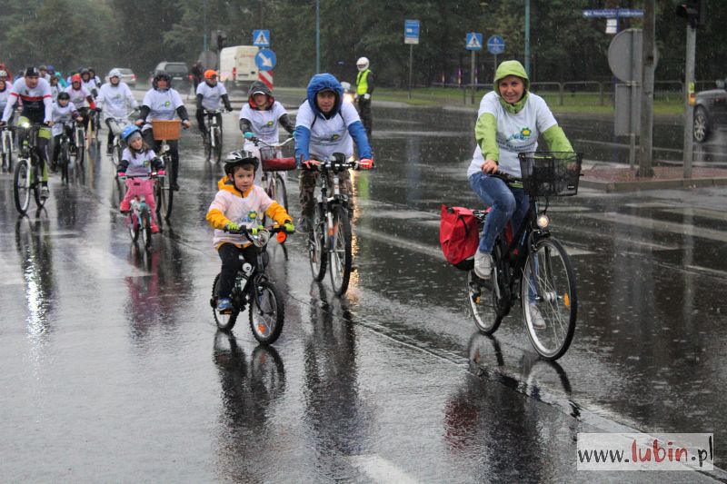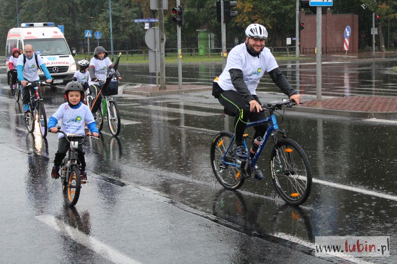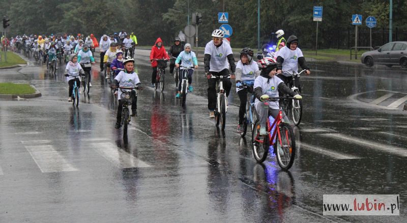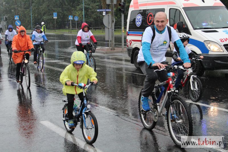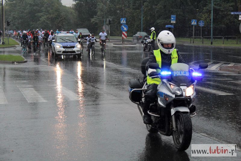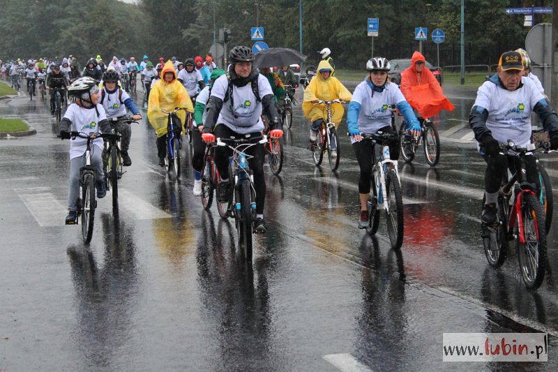 Niektórych ulewa wystraszyła – odebrali pamiątkową koszulkę i zdecydowali się wrócić do domu. Znalazło się jednak kilkuset śmiałków, którzy stanęli na linii startu i w deszczu przejechali – nieco skróconą ze względów bezpieczeństwa – trasę ulicami Lubina.