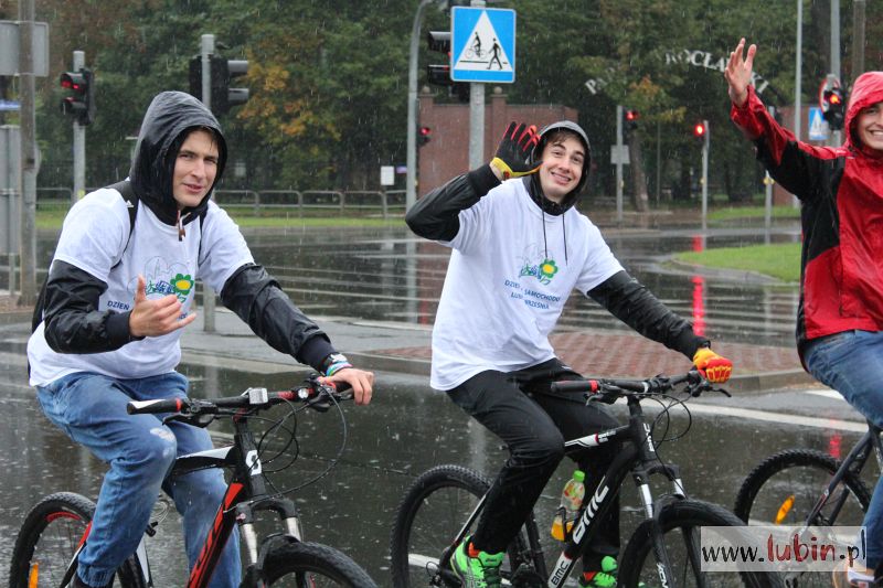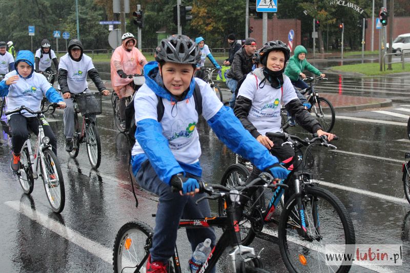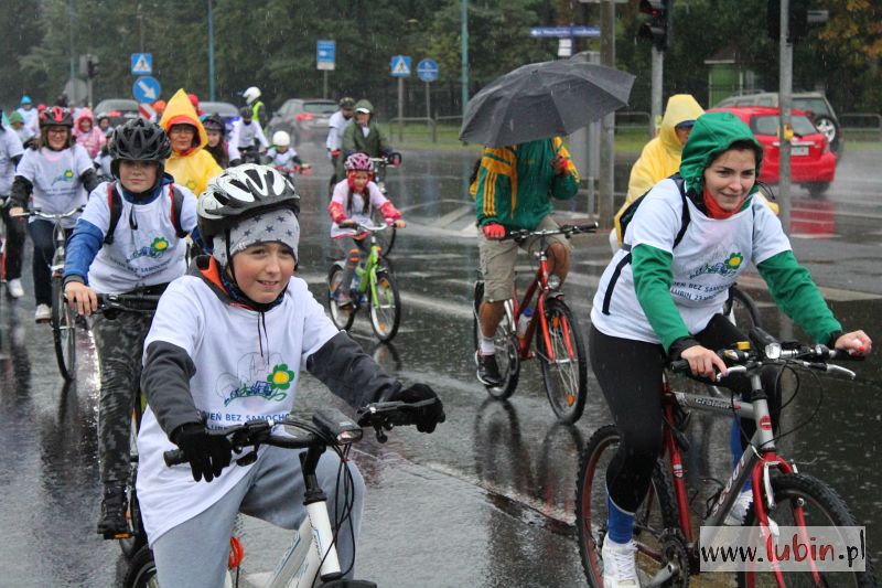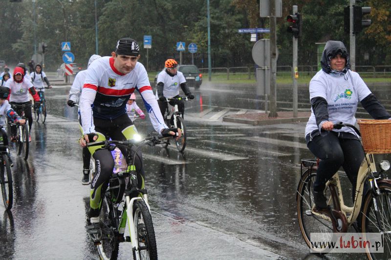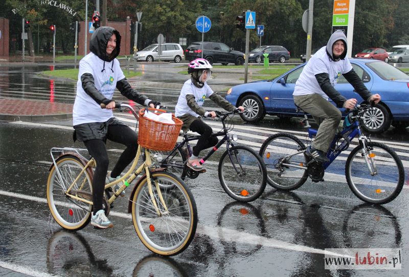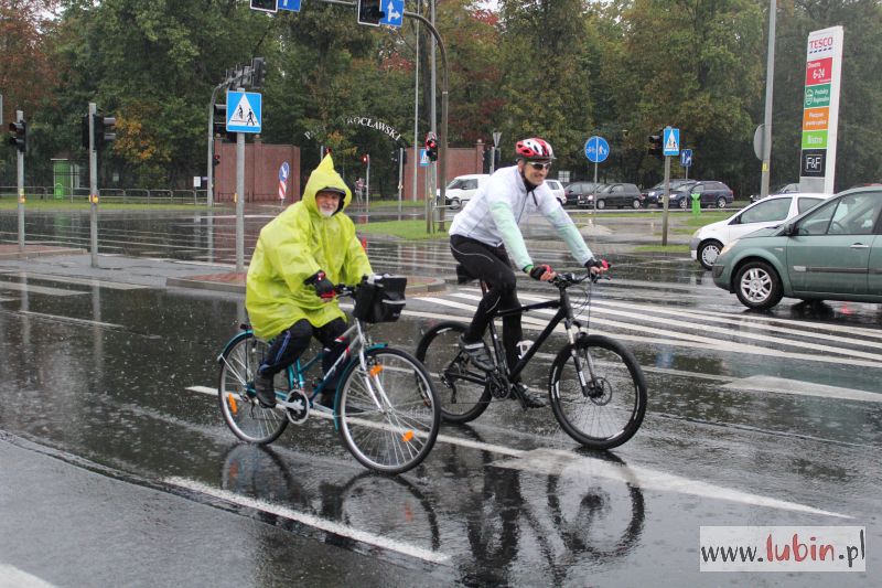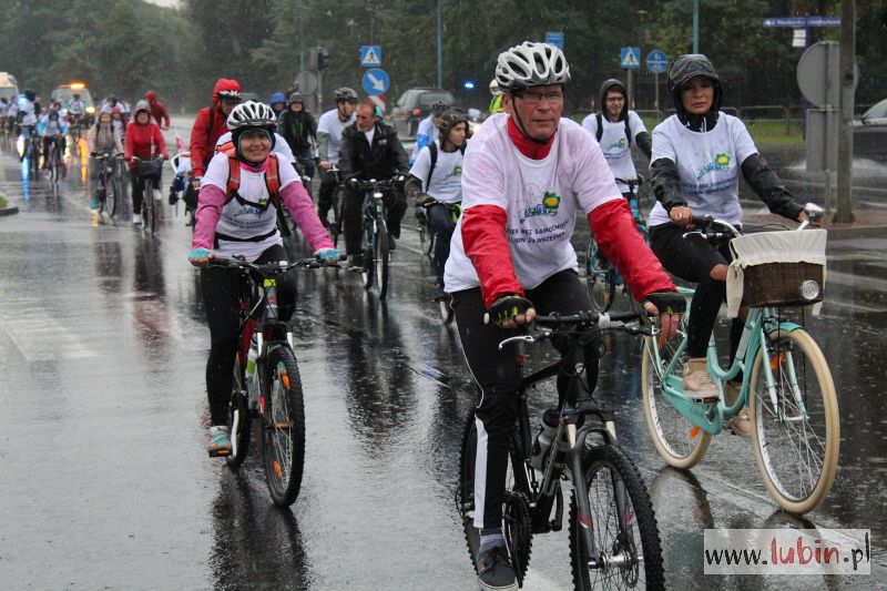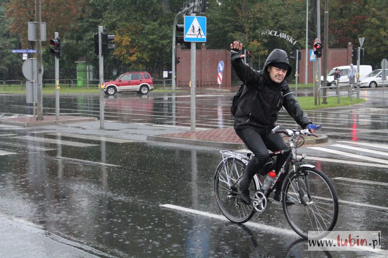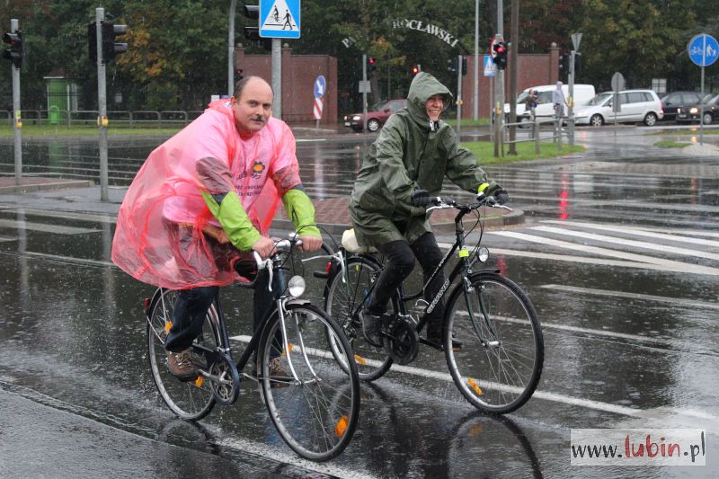Tak niesprzyjającej pogody nie pamiętają nawet ci, którzy od wielu lat organizują ten rajd. Mimo wszystko znaleźli się śmiałkowie, którzy w ulewnym deszczu zdecydowali się przyłączyć do Zwykłego Niezwykłego Przejazdu Rowerowego ulicami Lubina z okazji Dnia bez Samochodu. – Przecież nie jesteśmy z cukru, nie rozpuścimy się – odpowiadała większość, gdy pytaliśmy, czy deszcz im nie przeszkadza.