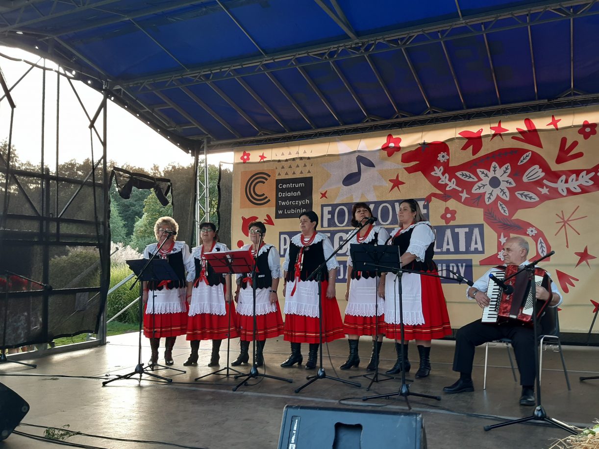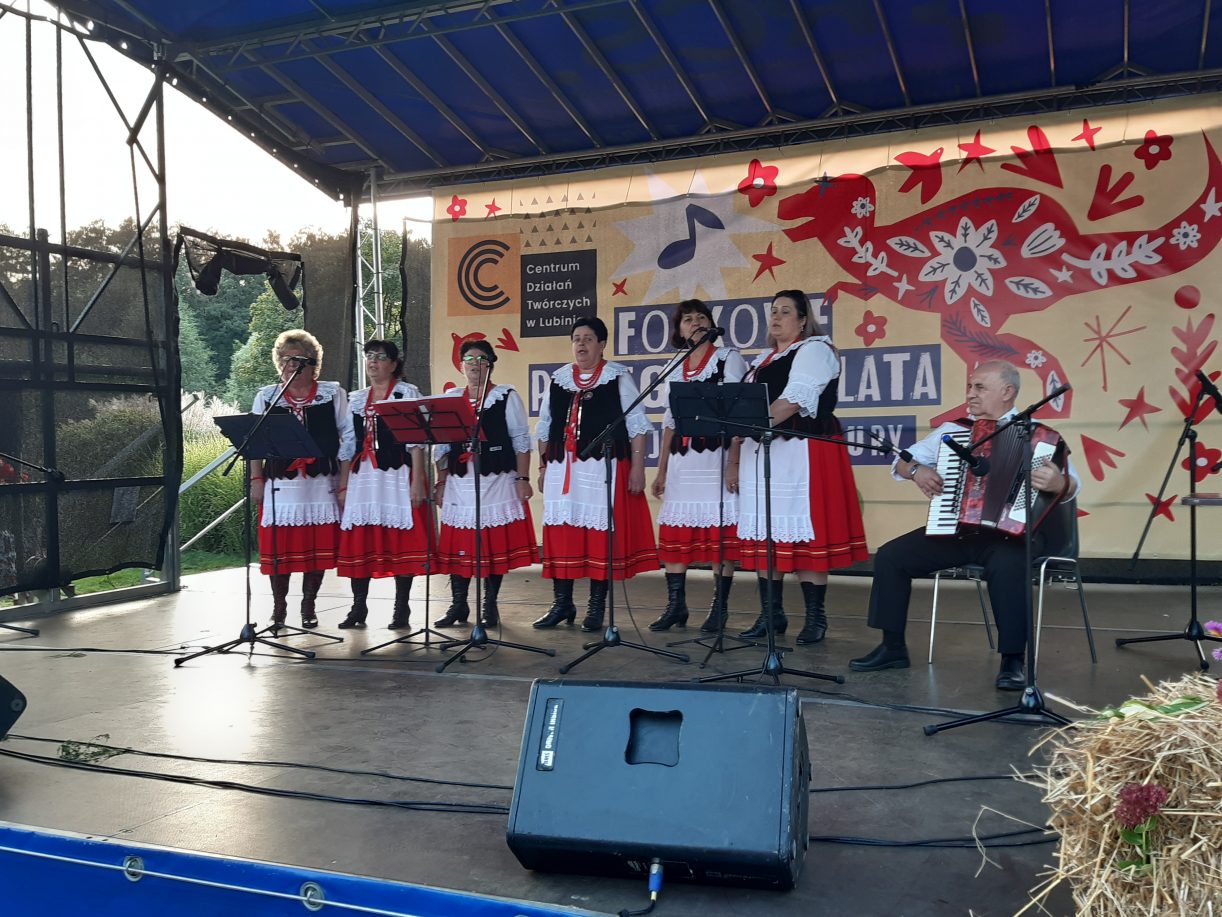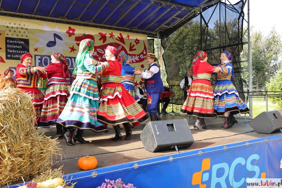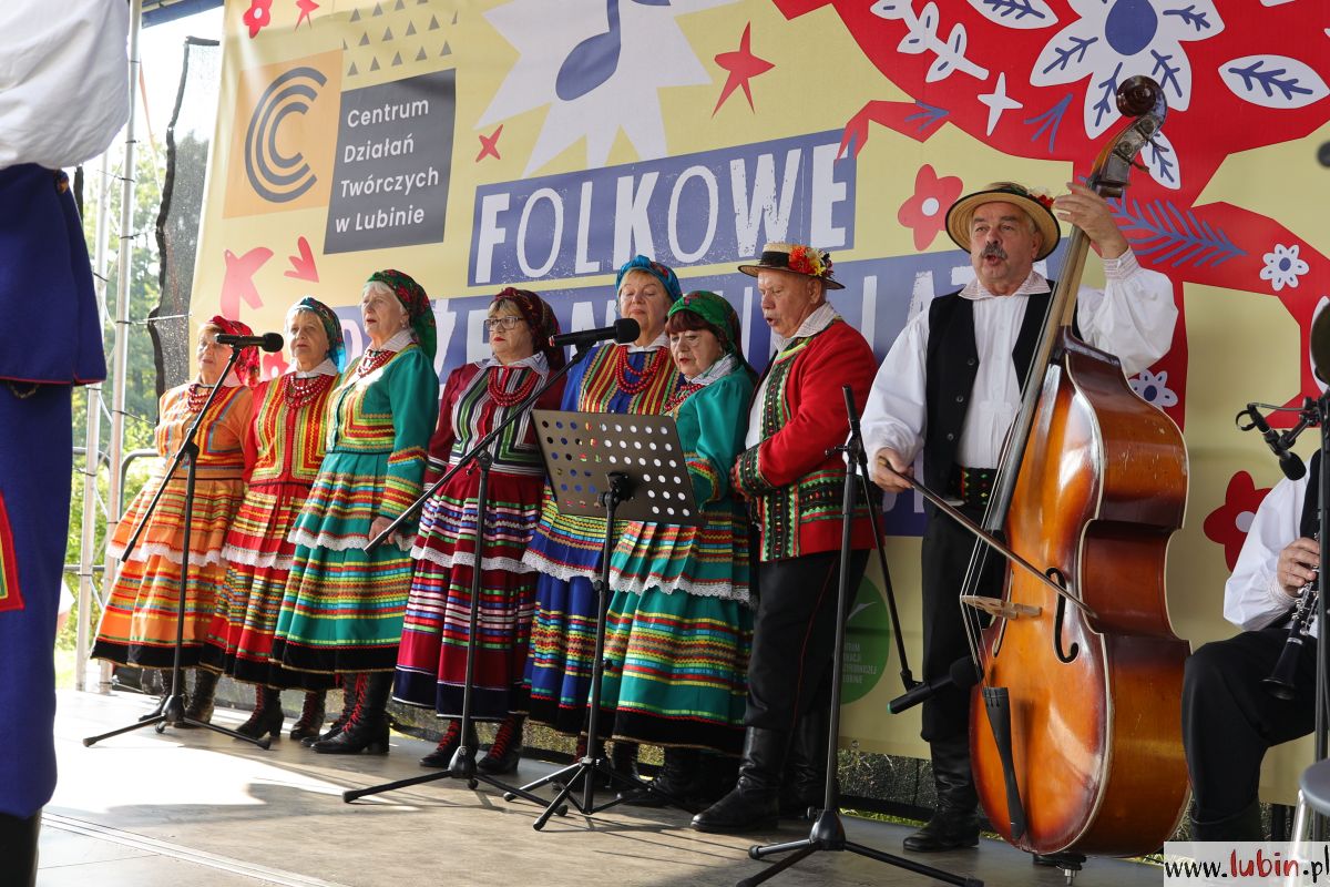 Jako pierwszy na scenie zaprezentował się zespół folklorystyczny „Lubin” z Krzeczyna Wielkiego, który w tym roku obchodzi 38-lecie swojej działalności. – Mamy ciut więcej niż 18 lat, ale nieco mniej niż dinozaury – śmieje się Wiesława Szulc, jedna z artystek zespołu.
