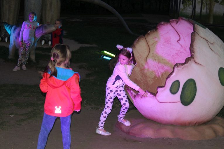 – Noc Dinozaurów to coroczny, dwudniowy cykl pokazów kina plenerowego w naszym zoo oraz wyjątkowe oświetlenie wybranych figur prehistorycznych gadów – okazja do obejrzenia znanych atrakcji, w zupełnie nowej odsłonie – mówi Agata Łabuzińska z Centrum Edukacji Przyrodniczej w Lubinie, które jest pomysłodawcą i organizatorem imprezy.