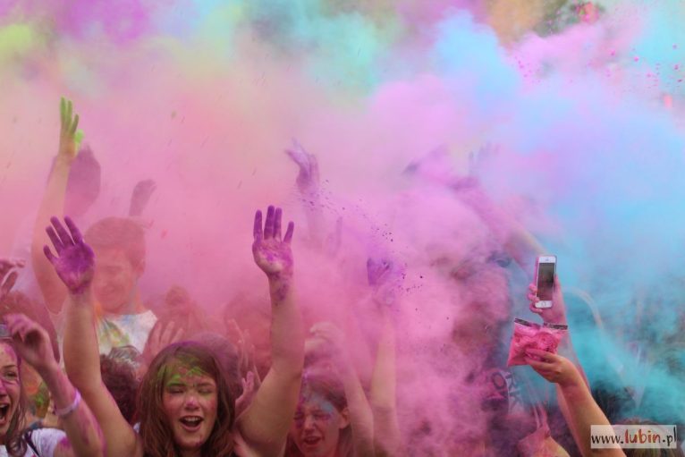 Holi Festiwal czyli posypywanie się kolorowymi proszkami holi, robi furorę na całym świecie. Nad błoniami również zawisła kolorowa chmura.