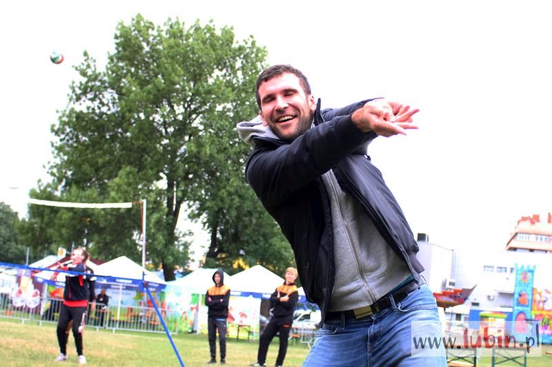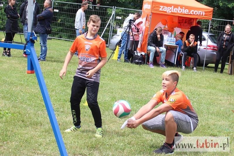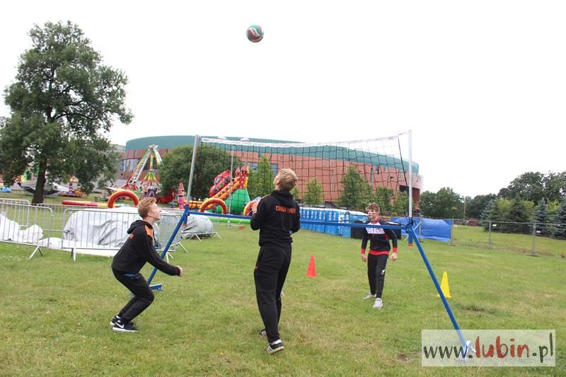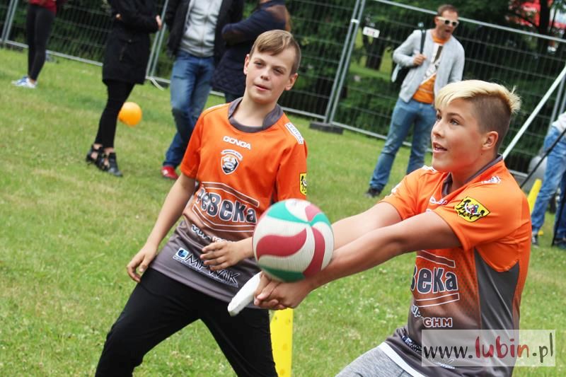 Siatkówkę promowało Cuprum Lubin. Młodzicy Daniela Dłużniakiewicza miejscowej ekipy wraz z seniorami w osobach Marcina Krysia i Filipa Bieguna zapraszali do wspólnej zabawy pod mini konstrukcją do gry w siatkówkę.