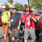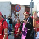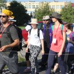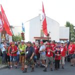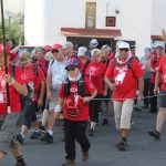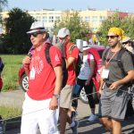 Chociaż od rana żar leje się z nieba, pod kościołem widać same uśmiechnięte twarze. Odpowiednio przygotowani na upał, wyruszyli do kolejnego przystanku.
