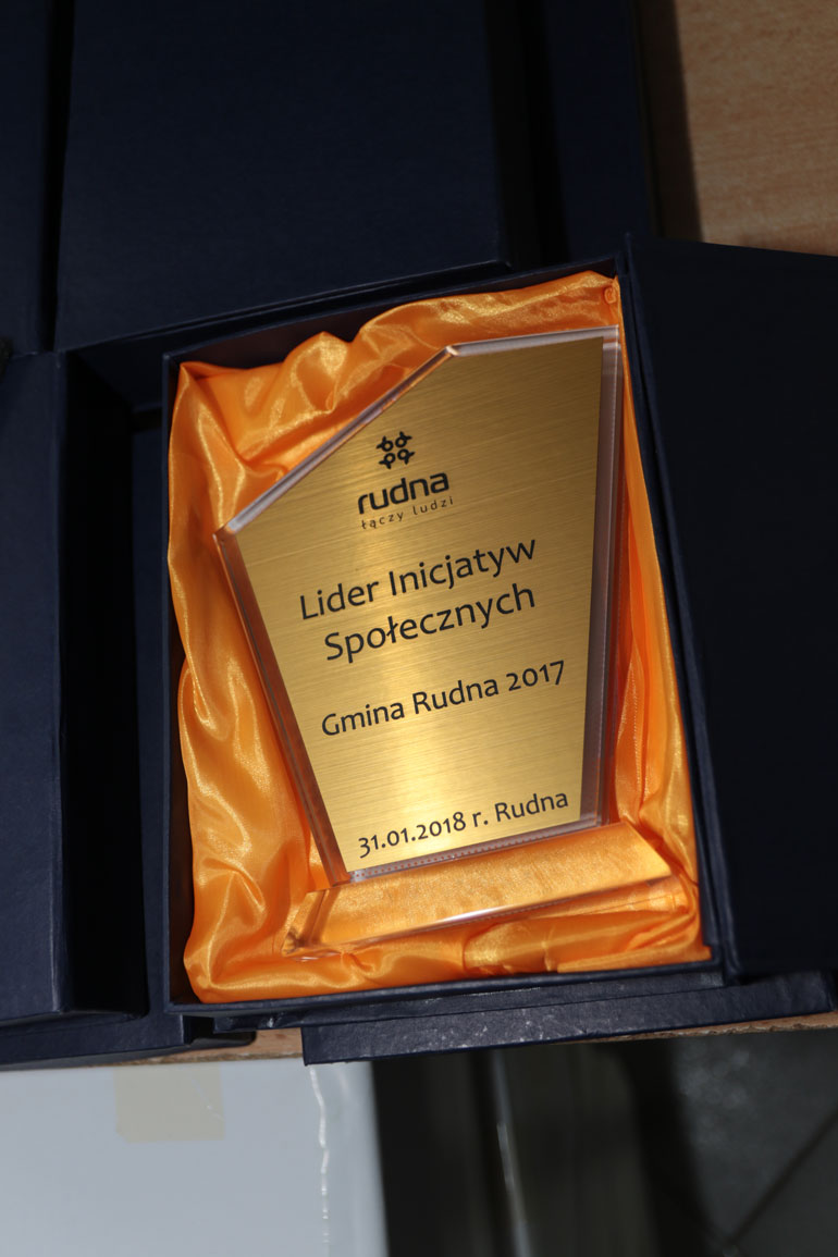 Punktem kulminacyjnym Gminnej Gali Organizacji Pozarządowych Rudna 2018 było wręczenie statuetek Lidera Inicjatyw Społecznych Gminy Rudna. Otrzymali je prezesi stowarzyszeń realizujący w 2017 r. zadania publiczne we współpracy i przy wsparciu finansowym gminy Rudna. Wyróżnienia otrzymali: Danuta Adamska – prezes Towarzystwa Przyjaciół Rudnej, Dorota Latawiec – prezes Stowarzyszenia Edukacyjnego „Mostek”, Dorota Sabaj – prezes Stowarzyszenia Karate „Goju Ryu” Chobienia, Iwona Malinowska – prezes Uczniowskiego Klubu Sportowego „Goju Ryu” Rudna, Elżbieta Dyrda – zastępca prezesa Polskiego Związku Niewidomych, Dariusz Wisłocki – prezes Gminnego Klub Sportowego „Sparta” Rudna, Adrian Szajnicki – prezes Uczniowskiego Klubu Sportowego SHARK Rudna, Zbigniew Smoła – prezes Koła Związku Pszczelarzy Ziemi Legnickiej, Jerzy Mularczyk – prezes Stowarzyszenia Sportowego „Odra” Chobienia, Piotr Witiak – prezes Stowarzyszenia Sportowego „Błysk” Studzionki, Aleksander Piecyk – prezes Stowarzyszenia Sportowego „Skarpa Orsk”, Ryszard Węgrzyn – prezes Uczniowskiego Klubu Sportowego „Sparta” Chobienia, Łukasz Obłoza – prezes Stowarzyszenia Obamma Fight Team. Dodatkowo statuetkę otrzymała Joanna Bagińska, prezes Stowarzyszenia Chobienia Od Nowa, które choć nie realizuje zadań ze środków gminnych, to prężnie działa na rzecz lokalnej społeczności.