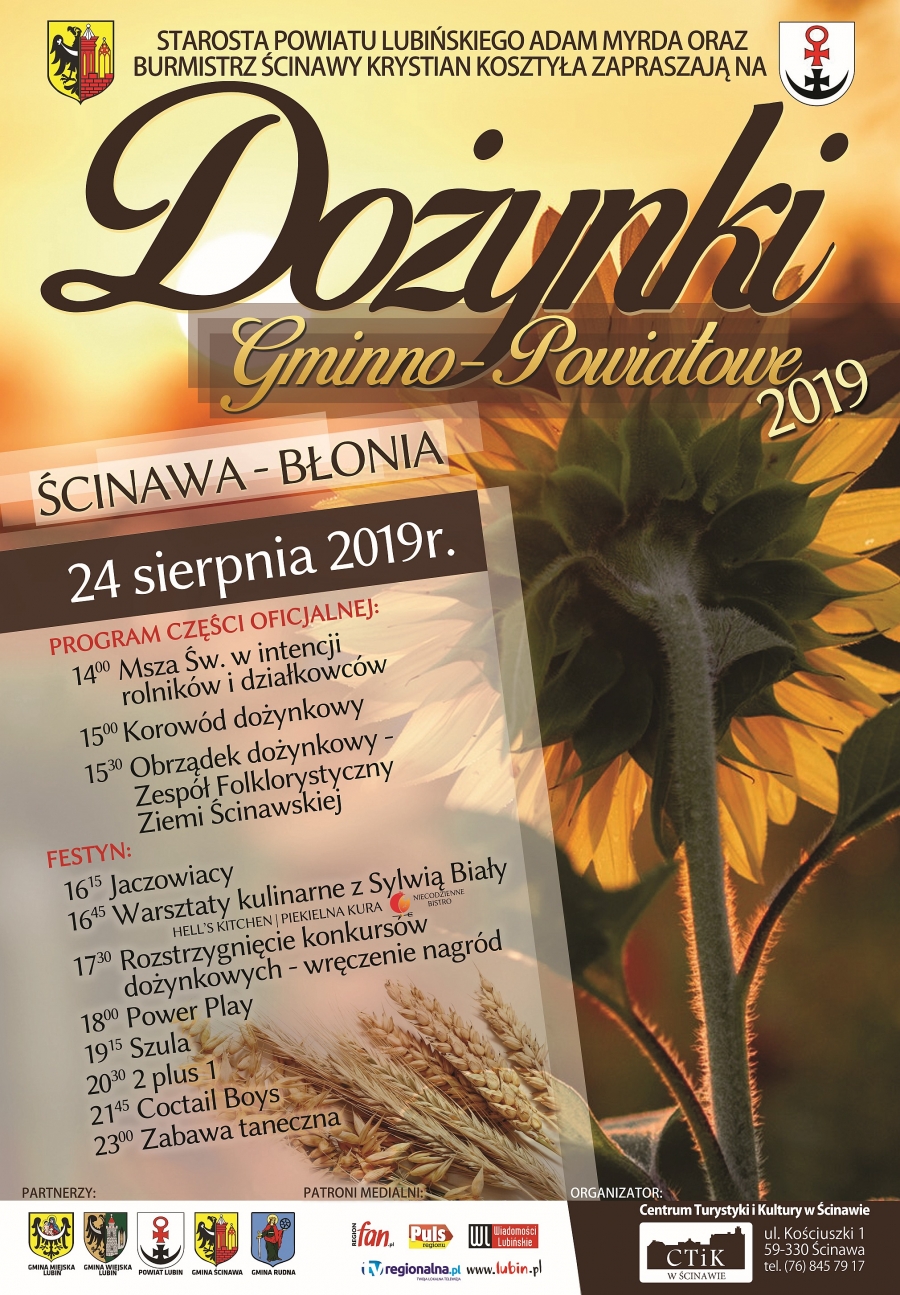 Szczegółowy program ścinawskich dożynek można znaleźć na załączonym plakacie.