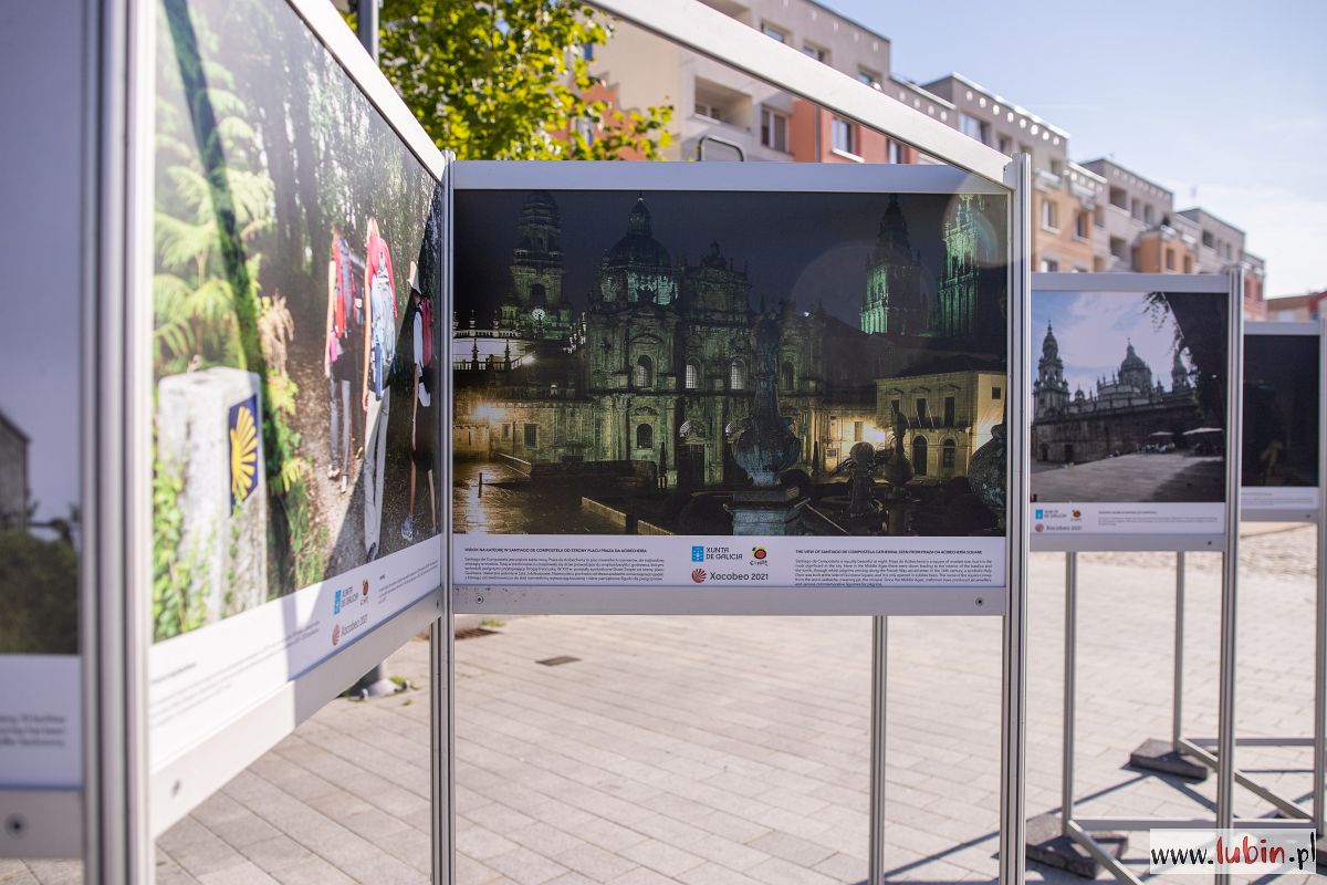 Na lubińskim rynku pojawiła się nowa wystawa. Ekspozycja prezentuje charakterystyczne miejsca znajdujące się na drodze św. Jakuba, nazywanej po hiszpańsku Camino de Santiago.