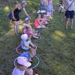 Najmłodsi natomiast z instruktorami z Chobieńskiego Ośrodka Kultury bawili się w kółko i krzyżyk, w kolory, przeciągnie liny i pokonywali różne tory przeszkód. Zjawił się również lisek, który łapał gąski. Było też pieczenie kiełbasek przy ogromnym ognisku, o które zadbała Grażyna Siwek.