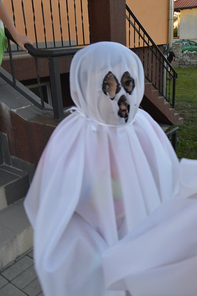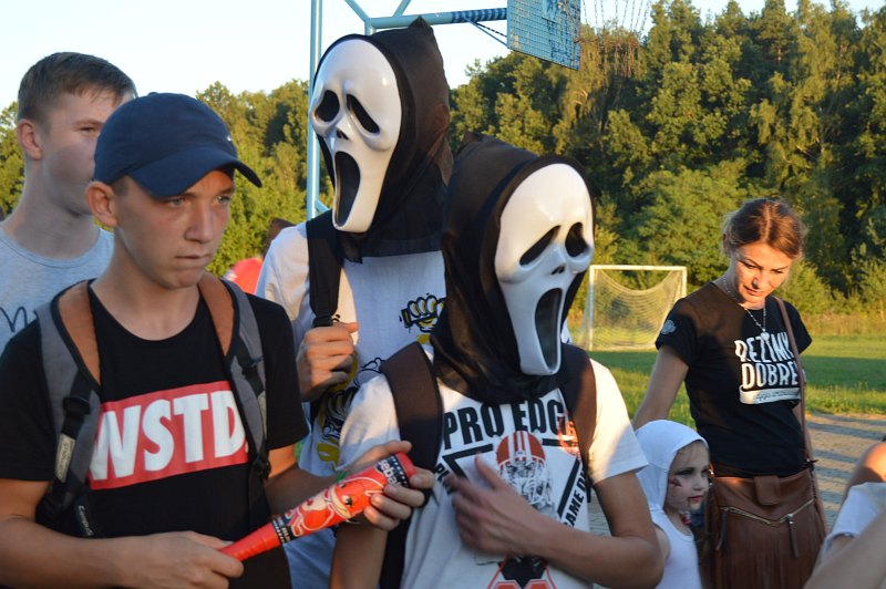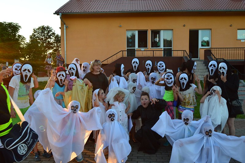 Na koniec dnia na dziedzińcu świetlicy w Nieszczycach pojawiły się duchy i duszki, które przeraźliwymi krzykami straszyły wszystkich przybyłych gości.