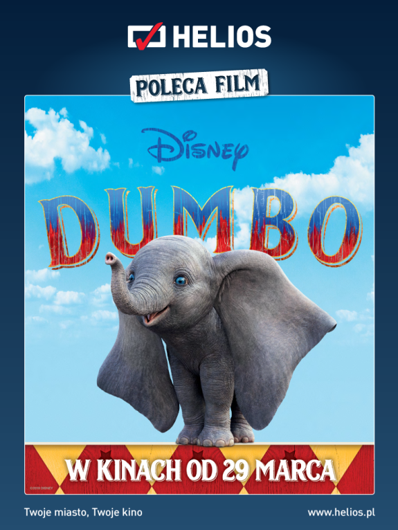 Bilety na premierowe seanse w kinie Helios dostępne są pod adresem: www.helios.pl/dumbo oraz w kasach kina.
