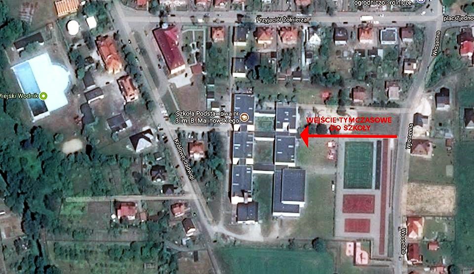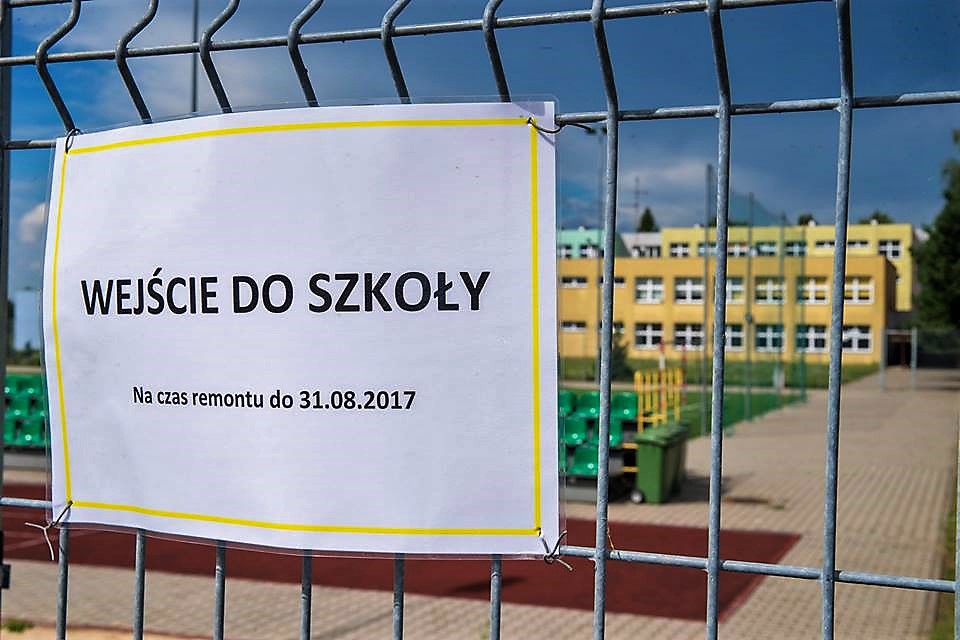 Gmina przypomina, że w czasie remontu do szkoły można wejść tylko od strony ulicy Wiosennej – bramką przez boisko szkolne.
