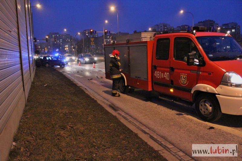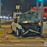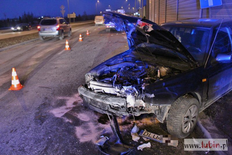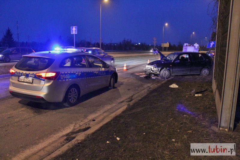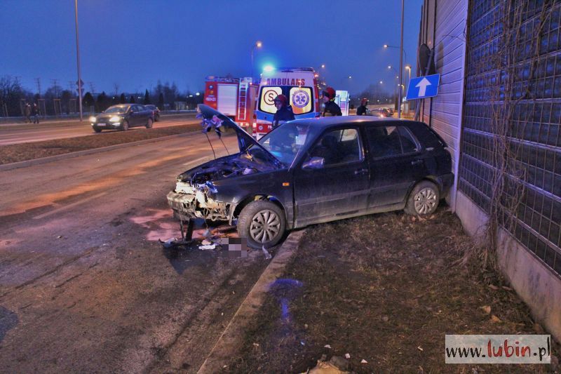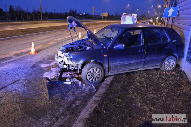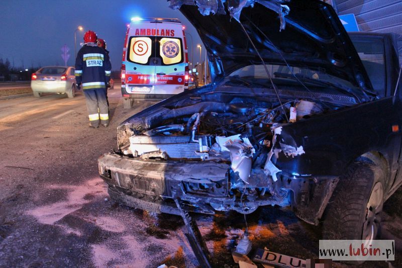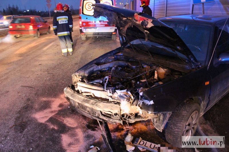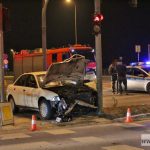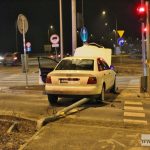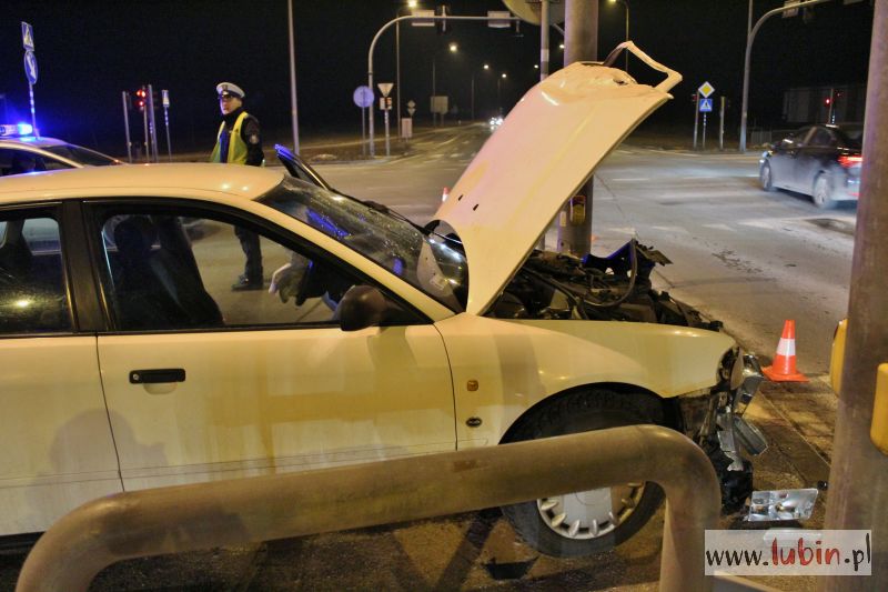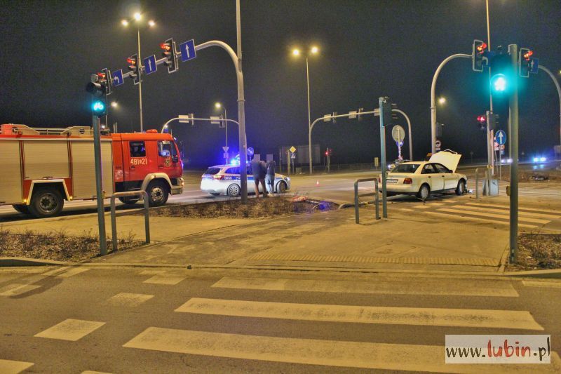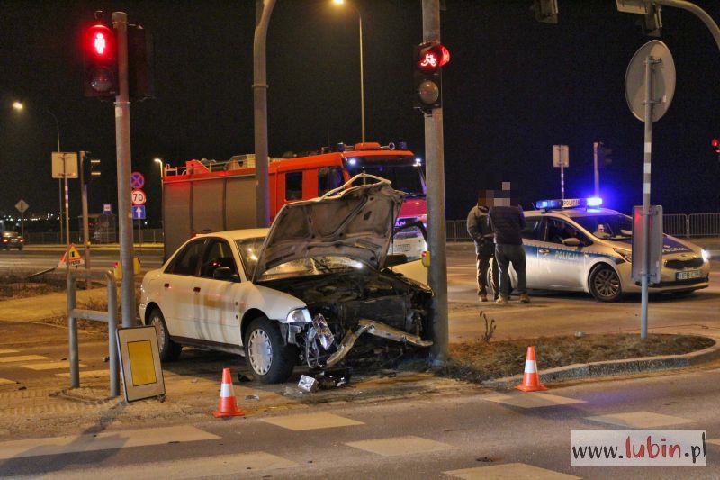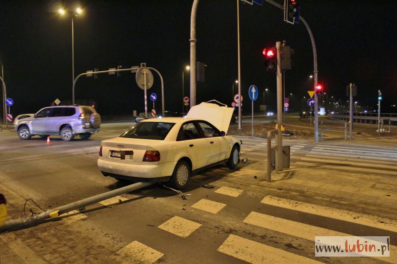 Nieco dalej, na skrzyżowaniu obwodnicy z ulicą Chocianowską białe audi skosiło słup sygnalizacji świetlnej i zatrzymało się w pobliżu przejścia dla pieszych.