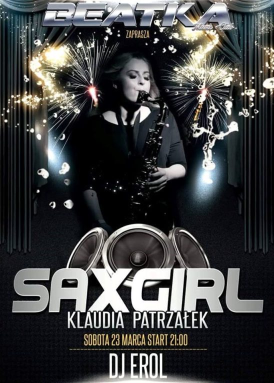 Natomiast w sobotę, 23 marca, w Beatce będzie gościć SaxGirl, czyli Klaudia Patrzałek, która da pokaz swoich umiejętności gry na saksofonie. Artystkę można było zobaczyć na ostatniej Gali Disco w Lubinie. Za konsolą tej nocy stanie DJ Erol. Początek zabawy o godzinie 21.