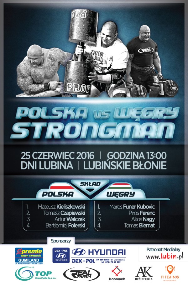 W sobotę, 25 czerwca, Dniom Lubina towarzyszyć będą zmagania strongmanów. O godzinie 13 na błoniach rozpocznie się pojedynek pomiędzy drużynami Polski i Węgier. – Będą też konkurencje dla publiczności. Zrobimy dla chętnych zawody, a najlepsi otrzymają nagrody – dodaje Ireneusz Kuraś, jeden z organizatorów zawodów strongmanów. Więcej o imprezie przeczytacie tutaj.