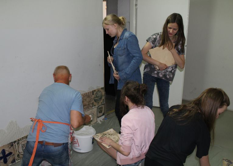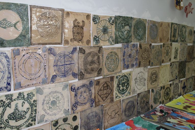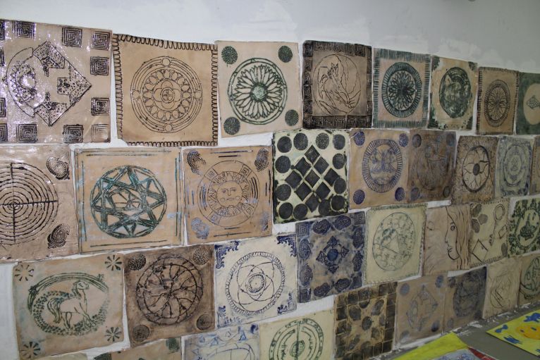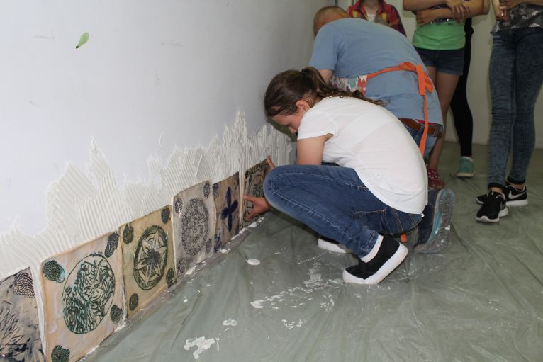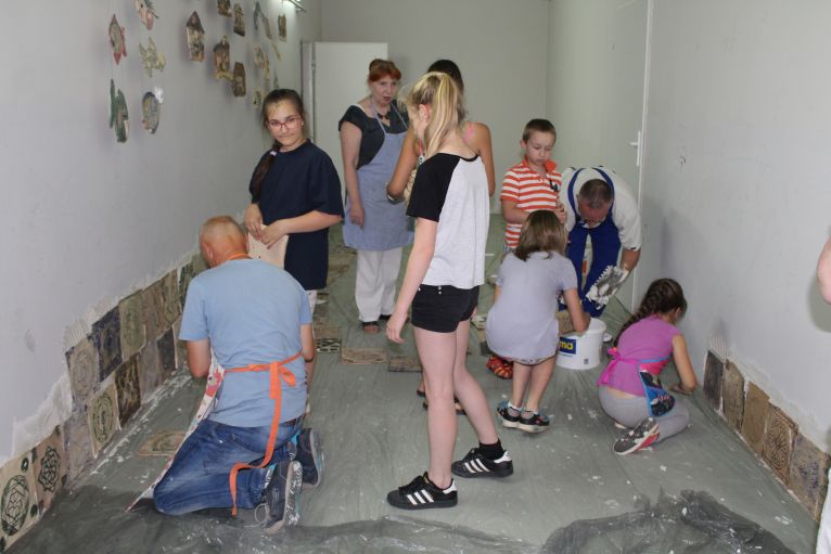 Mozaika z kafelków ma cztery rzędy na ścianie przylegającej do pracowni ceramicznej, a po przeciwnej stronie – trzy. W najwyższym rzędzie są prace młodych artystów z największym doświadczeniem. Wszyscy uczestnicy zostali w ten sposób docenieni i wyróżnieni. Niezwykłą mozaikę będzie można oglądać jeszcze przez wiele lat.