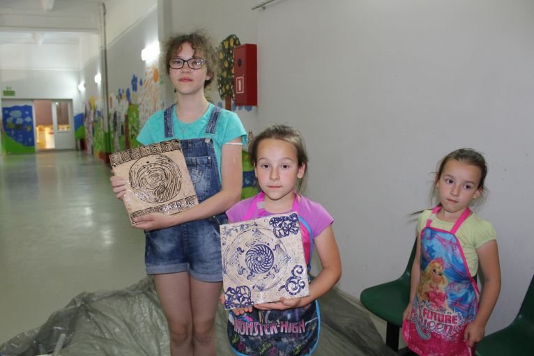 – Mnie udało się zrobić cztery płytki w ciągu dwóch zajęć. Są na nich między innymi słońce, kwiatki, trójkąty – dodaje koleżanka Natalki, dziesięcioletnia Ola.
