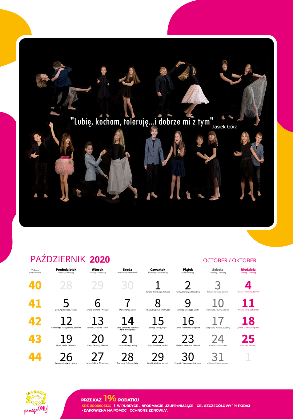 – Stworzyliśmy kalendarz wspólnie. Znalazły się w nim cytaty, które wymyślały same dzieci. Dotyczyły one dwóch ważnych kwestii, czyli hejtu oraz pomocy. To apel młodych ludzi, w którym sprzeciwiają się agresji i prześladowaniu innych ludzi. Dochód ze sprzedaży zostanie przekazany na Adasia z Gliwic, który jest jednym z podopiecznych fundacji. To chłopiec, który zebrał już pieniądze na operację drugiej chorej nogi, ale nadal są mu one potrzebne na rehabilitację – mówi Małgorzata Radko, prezes Fundacji SOL.