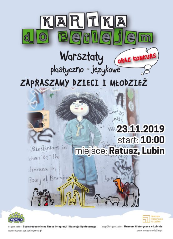 Organizatorem akcji jest Stowarzyszenie Gron, które otwiera klub wolontariusza z elementami socjoterapii dla dzieci i młodzieży z Lubina i okolic. „Biuro do Spraw Dobrych”, bo taką nazwę będzie nosił klub, swoją działalność rozpocznie warsztatami „Kartka Do Betlejem”. Podczas zajęć uczestnicy będą mogli wykonać zadanie konkursowe oraz podpisać umowę wolontariacką.