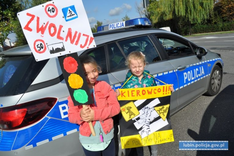 Nic tak nie działa na kierowców, jak małe dziecko proszące o ostrożną jazdę. Aby zwiększyć wyobraźnię uczestników ruchu drogowego, lubińscy policjanci zaprosili do wspólnych działań dzieci ze Szkoły Podstawowej nr 14 w Lubinie. Każdy z kontrolowanych kierowców zgodnie twierdził, że dziecko podchodzące do samochodu z namalowaną przez siebie chorągiewką czy transparentem z hasłem np. „Proszę. Zwolnij. My chcemy żyć”, wzrusza i daje wiele do myślenia.