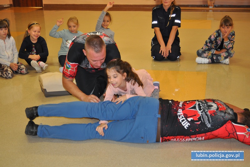 Do działań dołączyli ratownicy górniczy z HDK „Maltański Legion”, którzy w sposób profesjonalny i bardzo przystępny uczyli dzieci, jak udzielić pierwszej pomocy osobom poszkodowanym w wypadkach. Maluchy bardzo chętnie i aktywnie brały udział w szkoleniu. Już wiedzą jak posłużyć się defibrylatorem, ułożyć człowieka w pozycji bocznej ustalonej czy przeprowadzić resuscytację.