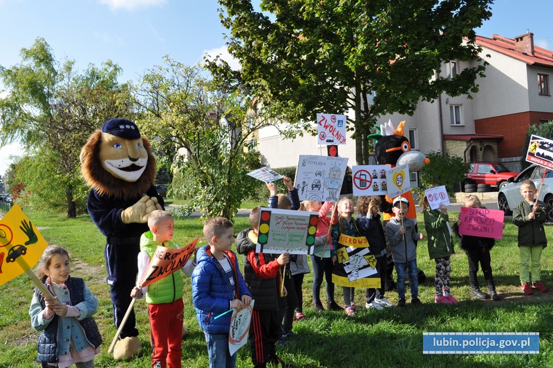 Podczas akcji nie zabrakło również Komisarza Lwa i Krecika, którzy wspólnie z dziećmi promowali bezpieczeństwo na drogach.