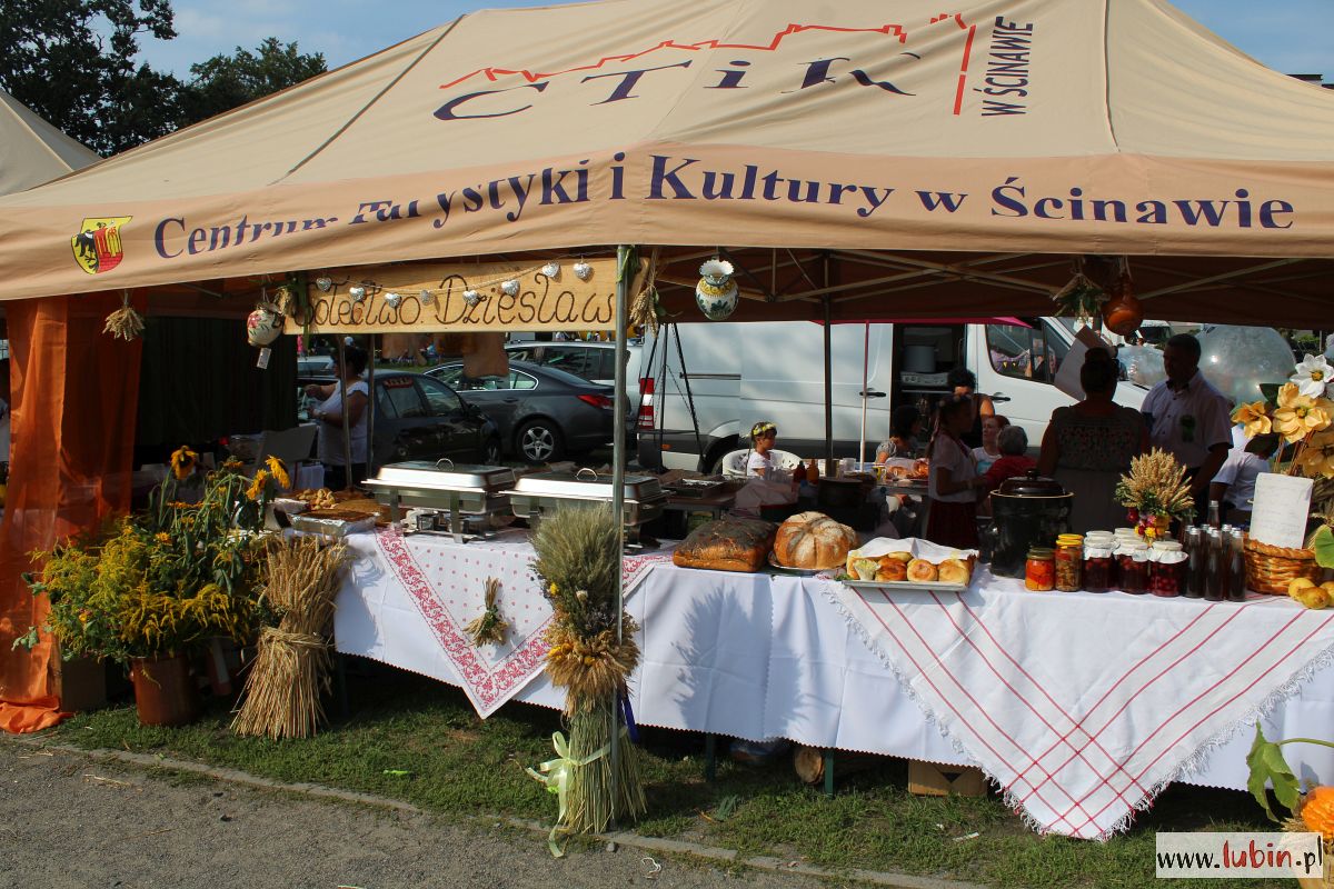 Nie mogło dziś oczywiście zabraknąć konkursu na najpiękniejszy wieniec, który jest nieodłączną częścią każdych dożynek, oraz wyrobów mieszkańców poszczególnych miejscowości z gminy Ścinawa. Na przygotowanych z pieczołowitością stoiskach nie brakowało pyszności. Były przetwory, nalewki, różnego rodzaju chleby, smalec, słodkości…