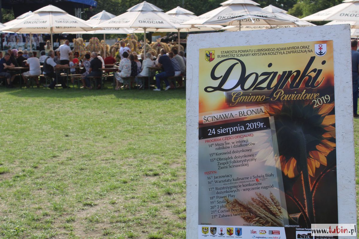 Za ukończenie żniw i zebrane plony dziękują dziś rolnicy, gospodarze i działkowcy z całego powiatu lubińskiego. W Ścinawie trwają właśnie powiatowo-gminne dożynki. – Przyszedł czas, by świętować po ciężkiej pracy – zaprasza wszystkich na dzisiejszą imprezę burmistrz Krystian Kosztyła.