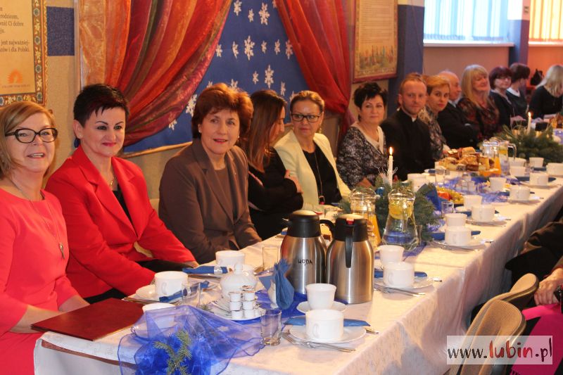 – Moja obecność tutaj jest systematyczna od wielu lat. Do tej szkoły przychodzą moi wychowankowie, kończący edukację przedszkolną. Jest to okazja, by się z nimi spotkać, przytulić, połamać opłatkiem i złożyć życzenia ich rodzicom. Ta placówka jest szczególna – dodaje Jadwiga Musiał, przewodnicząca rady powiatu lubińskiego i jednocześnie dyrektor Przedszkola nr 10 z Oddziałami Integracyjnymi w Lubinie.