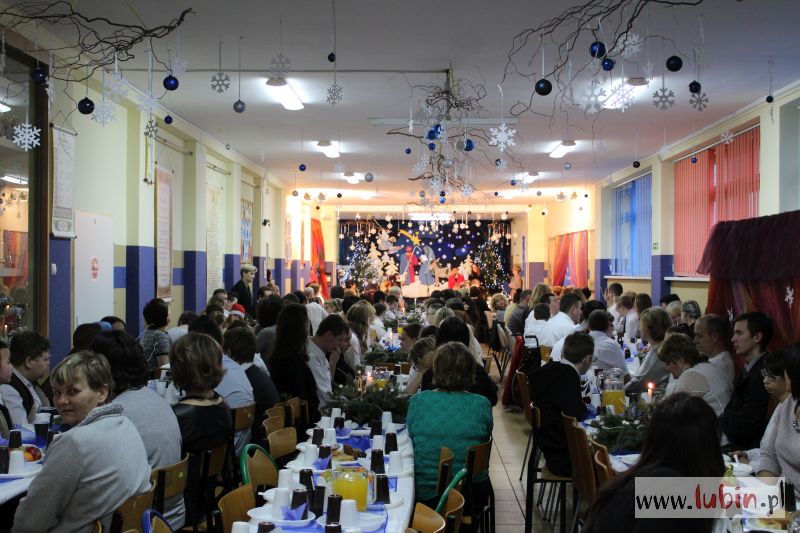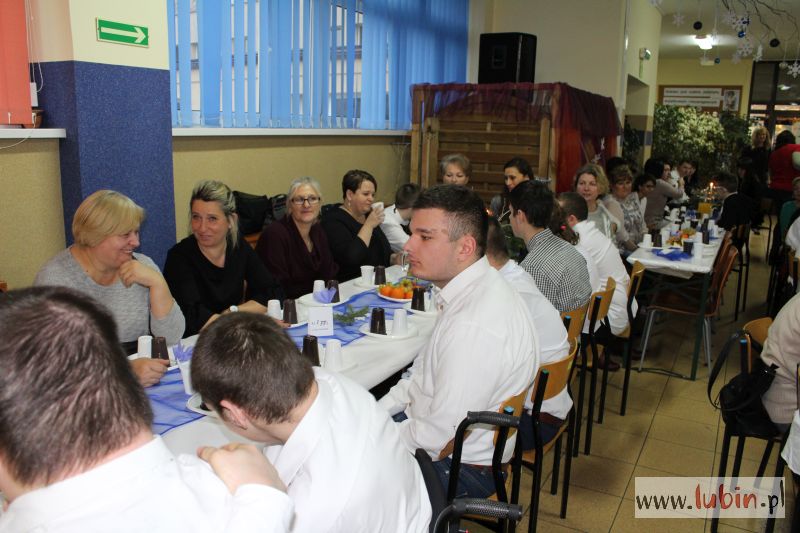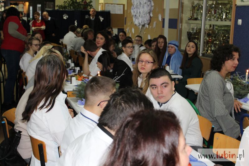 Łamanie się opłatkiem, wspólne kolędowanie, pokazy artystyczne utalentowanych dzieci, dużo wzruszeń i ciepła – tak wyglądało dzisiejsze spotkanie wigilijne w Zespole Szkół i Placówek Oświatowych w Lubinie. Ta tradycja kultywowana jest od 10 lat. W uroczystej wieczerzy jak zwykle uczestniczyła cała społeczność szkolna – 150 uczniów, tyle samo rodziców oraz 20 zaproszonych gości.