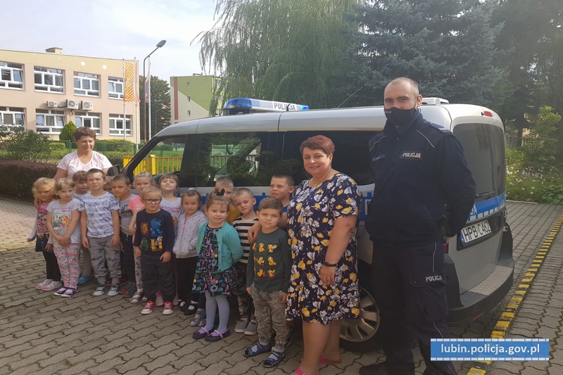 Policjanci, realizując działania w ramach akcji pn. „Bezpieczna droga do szkoły” odwiedzili dzieci z Przedszkola Miejskiego nr 9 w Lubinie. Tematem wiodącym było bezpieczeństwo na drodze. Dzieci czynnie uczestniczyły w zajęciach, dzieląc się swoimi doświadczeniami i spostrzeżeniami. Dzielnicowy omówił pracę policjanta i pokazał radiowóz, a towarzysząca mu policjantka przekazała dla całej grupy odblaskowego węża, dzięki któremu maluchy będą bezpieczne podczas spacerów poza placówką.