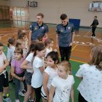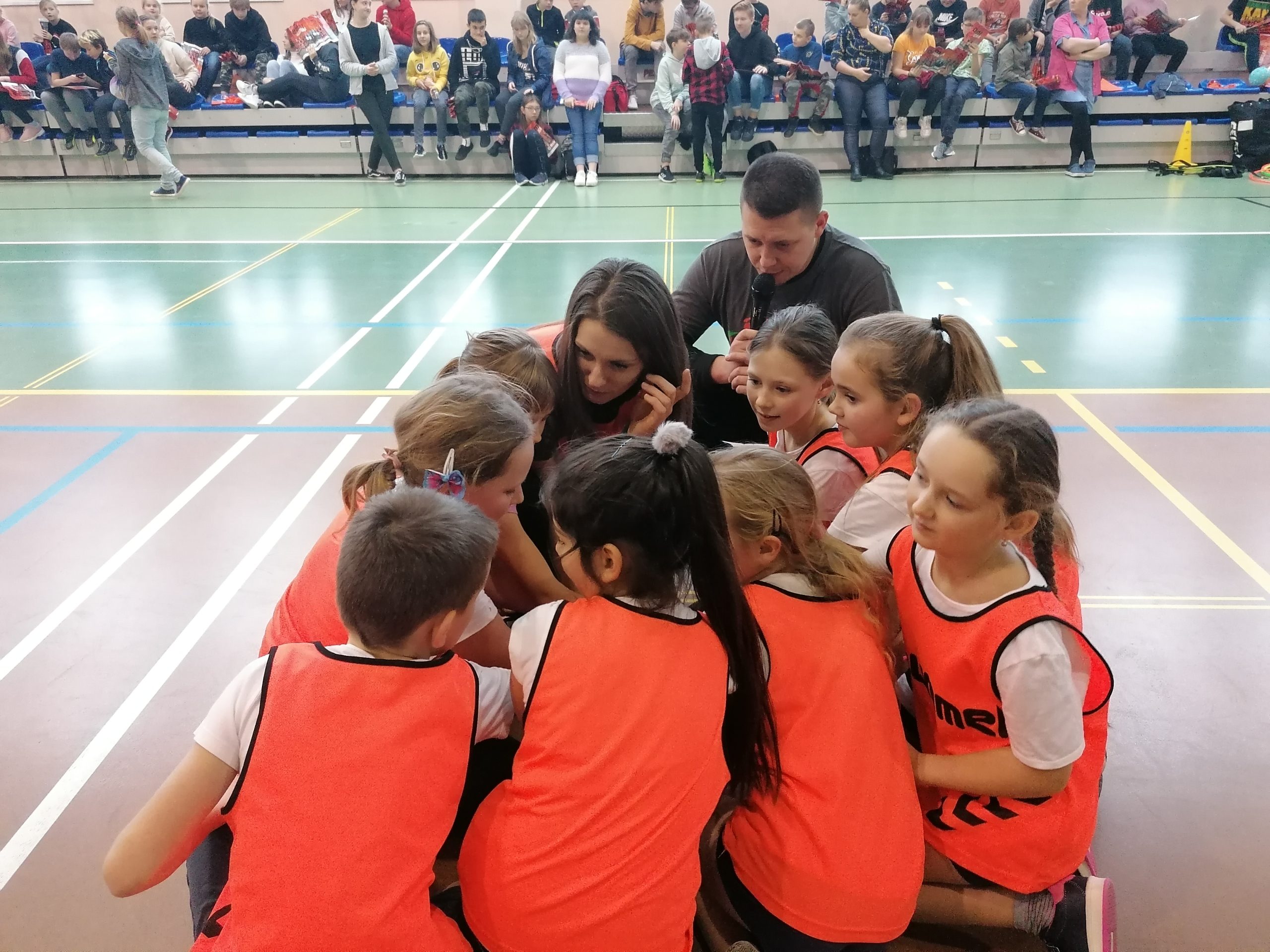 Z auli wszyscy udali się na halę sportową, gdzie odbyły się zajęcia WF-u. W treningu brali udział uczniowie, którzy rozpoczęli swoją przygodę z piłką ręczną pod okiem dyrektora Przemysława Bagińskiego. Reszta zasiadła na trybunach i gorąco dopingowała swoich kolegów i koleżanki. Wynik zszedł na dalszy plan, a najważniejsza była dobra zabawa i możliwość trenowania pod okiem Miedziowych.