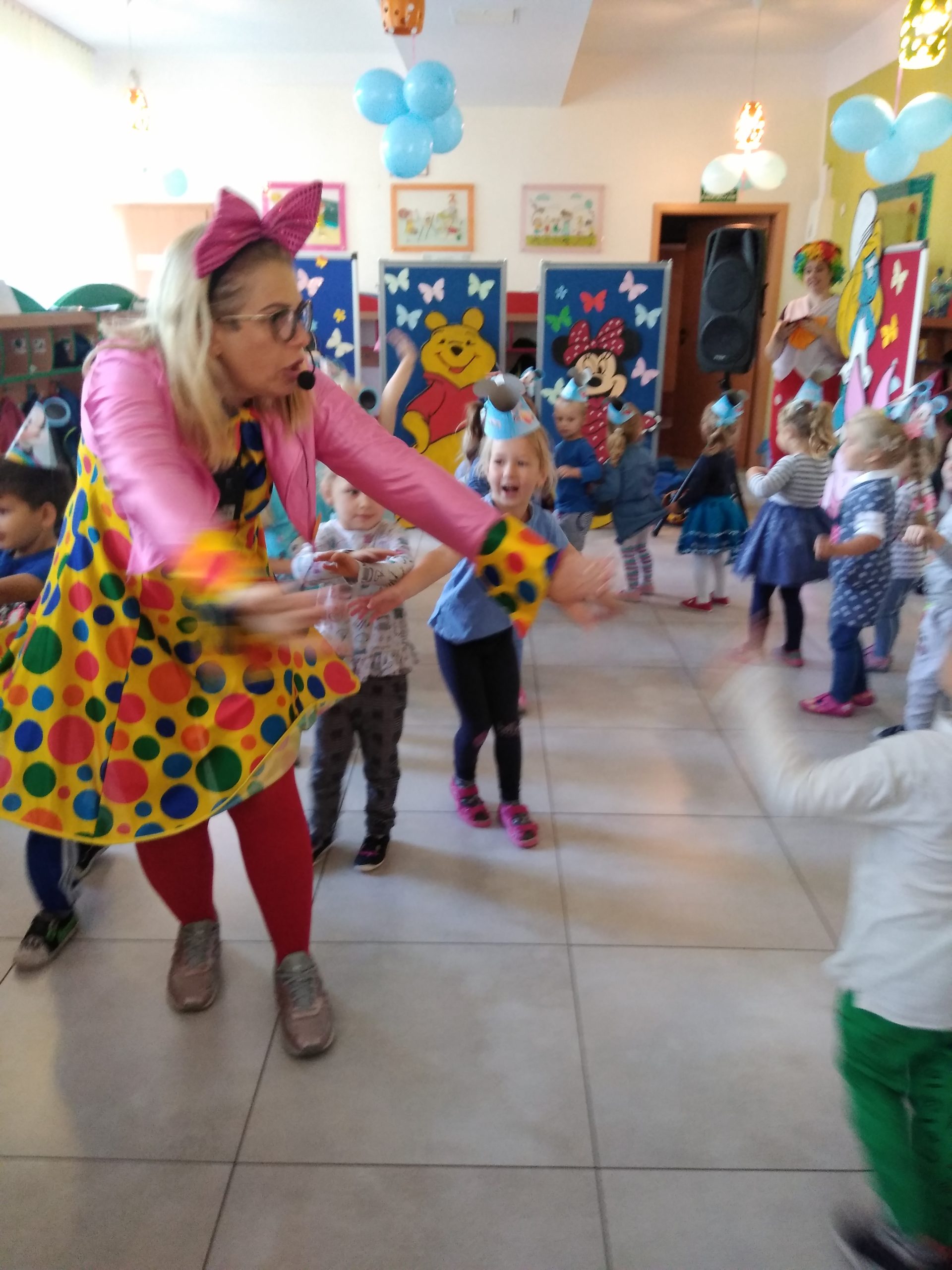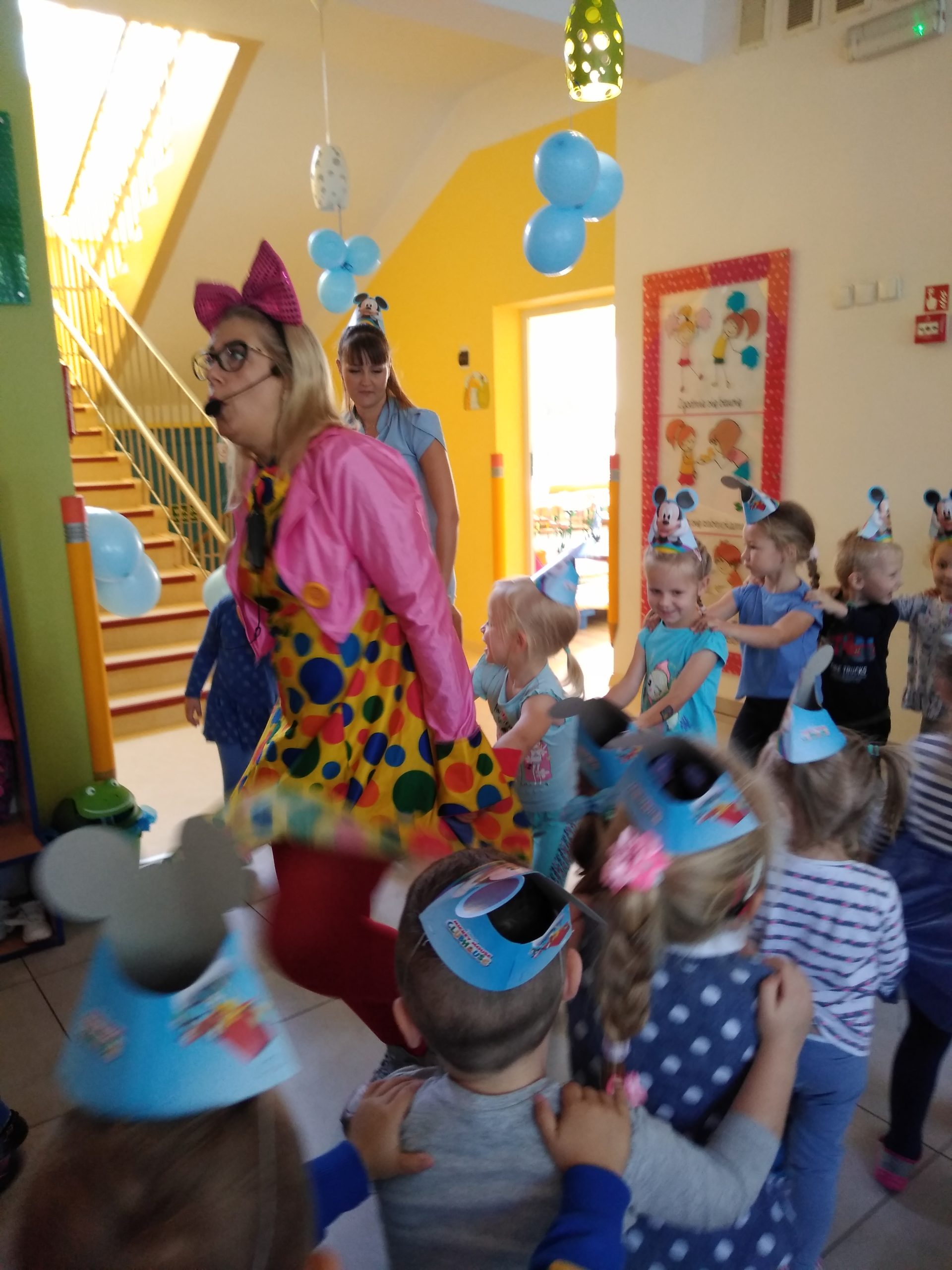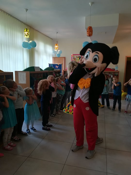 Do przedszkola przybył też specjalny gość – Myszka Miki, która uczyła dzieci swoich ulubionych tańców, ale również rozdała słodki poczęstunek i dyplom wzorowego przedszkolaka.