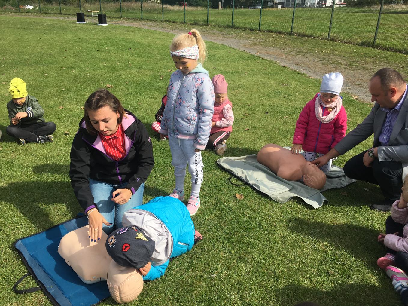 Wielką atrakcją był też przyjazd strażaków z Lubina, którzy opowiadali o swojej pracy, pokazywali dzieciom sprzęt pożarniczy i przypominali o tym, jak należy się zachować w sytuacjach zagrożenia, a także kurs pierwszej pomocy przedmedycznej.