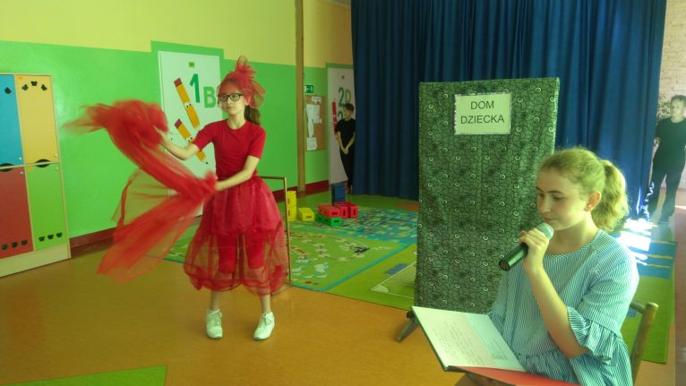 Od lutego do czerwca w klasie V b Szkoły Podstawowej nr 9 w Lubinie realizowany był projekt „Bliżej rodziny”. Uczniowie przygotowali etiudę „Dziecko z kolcami”, piosenkę o szczęśliwej rodzinie oraz wspólny integracyjny taniec i zaprezentowali całej szkole oraz rodzicom. Do projektu włączyli się uczniowie klasy II a.