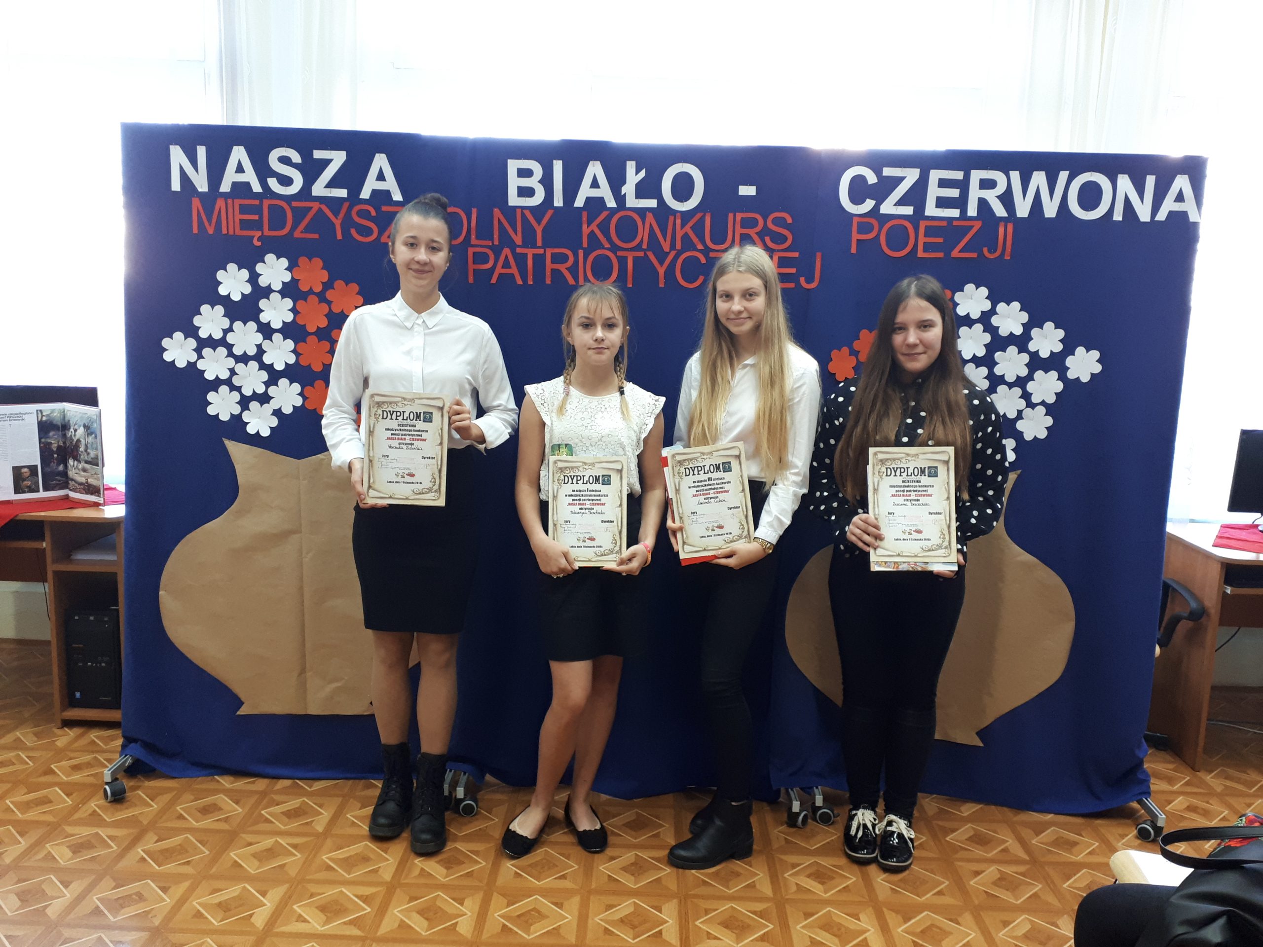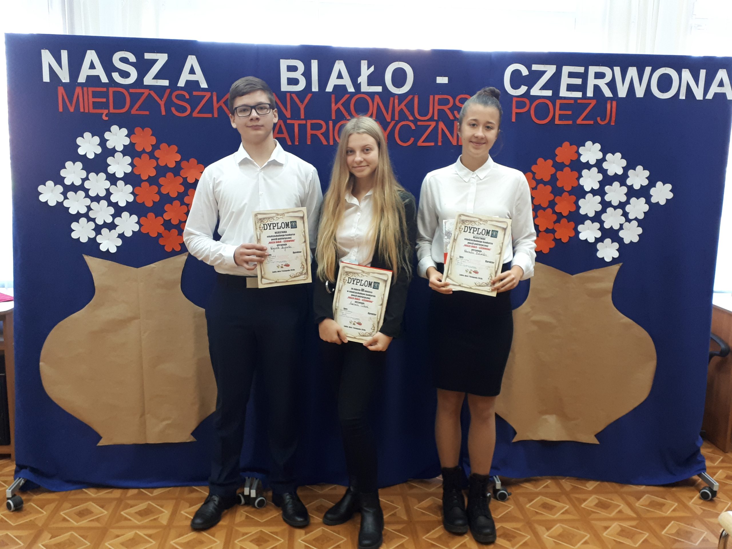 Pierwsze miejsce zajęła Katarzyna Kosobucka z Zespołu Szkół Sportowych w Lubinie, która recytowała wiersz J. Pietrzaka „Taki kraj”. Drugie miejsce przypadło uczniowi z tej samej szkoły – Mikołajowi Klemaszewskiemu za „Grzeszne pytania” R. Słomińskiego, trzecie za „Dwie flagi” K.I. Gałczyńskiego przyznano Amandzie Cichoń ze Szkoły Podstawowej w Rudnej. Wyróżnienia powędrowały w ręce Weroniki Zielińskiej ze Szkoły Podstawowej w Rudnej i Katarzyny Sadłowskiej ze Szkoły Podstawowej nr 10 w Lubinie.