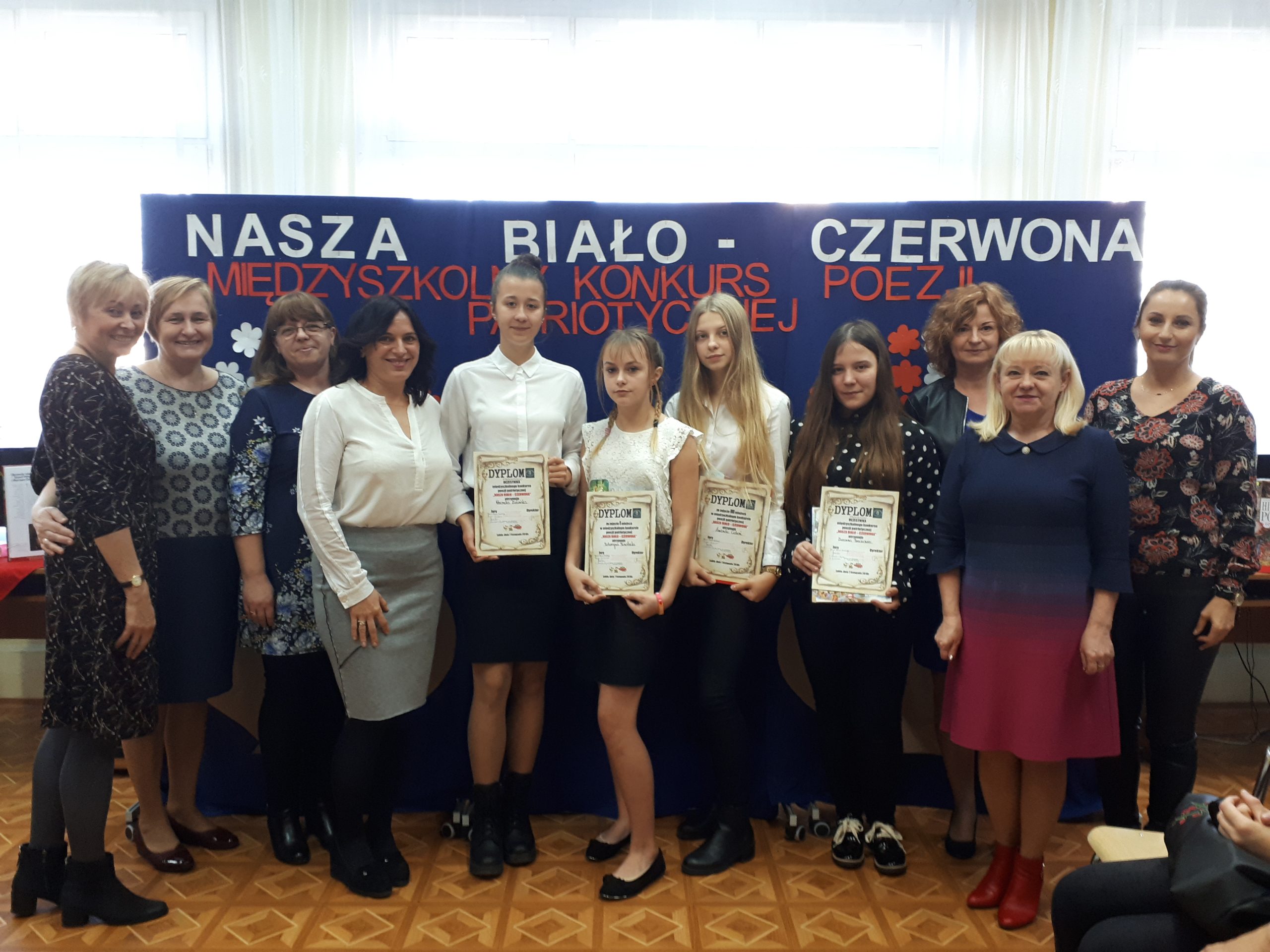Szkoła Podstawowa nr 9 podejmuje różnorodne działania, mające zaszczepić w młodych szacunek do tradycji i symboli narodowych. Tym razem, wyjątkowa uroczystość jaką jest 100-lecie odzyskania niepodległości, skłoniła nauczycielki Joannę Haznar-Kowalczyk i Annę Grodecką do zorganizowania Międzyszkolnego Konkursu Poezji Patriotycznej „Nasza biało-czerwona”. Podczas spotkania wybrzmiewały piękne wiersze: Juliusza Słowackiego, Władysława Bełzy, Wisławy Szymborskiej, Konstantego Ildefonsa Gałczyńskiego, Jana Pietrzaka, Marka Grechuty i innych polskich poetów. Młodzi recytatorzy z pasją i uczuciem recytowali, często obszerne utwory, a ich koledzy z innych szkół przysłuchiwali się im z uwagą. W konkursie zaprezentowali się uczniowie z Lubina i Rudnej.