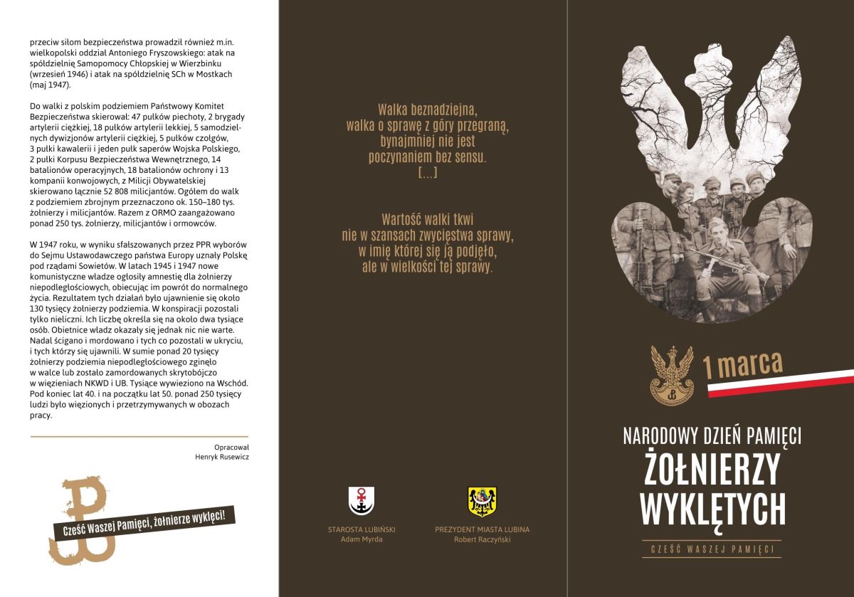 Z okazji Narodowego Dnia Pamięci Żołnierzy Wyklętych lubińskie Starostwo Powiatowe przygotowało ulotkę. Można ją znaleźć poniżej.
