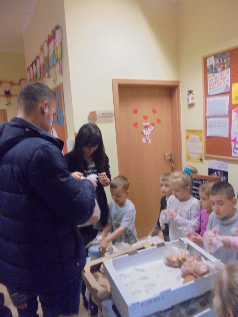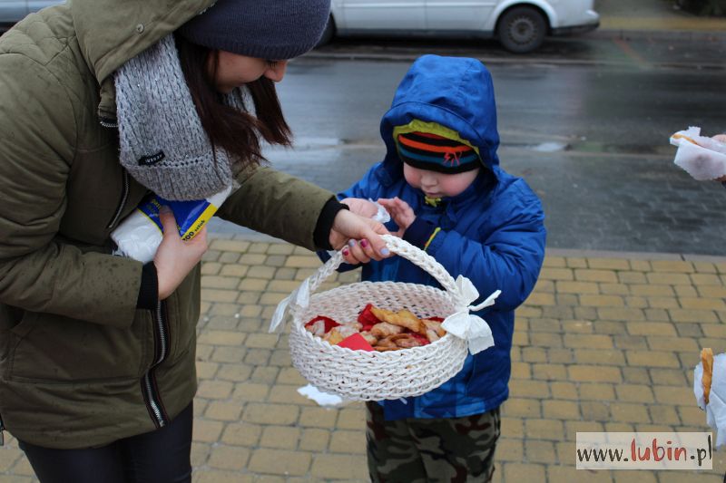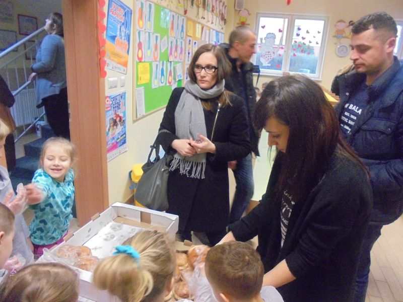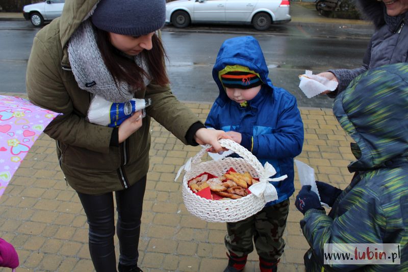 Każdy kto kupił tutaj pączka, pomagał jednocześnie w leczeniu górnika strzałowego z ZG Rudna, Arkadiusza Sitka, który ma nowotwór złośliwy wpustu żołądka z przerzutami do wątroby. Choć za jeden smakołyk trzeba było zapłacić 3 zł, to rodzice zazwyczaj dawali więcej pieniędzy. Tym sposobem udało się uzbierać 800 zł. Kwota może jeszcze wzrosnąć, bo po południu do sprzedania będzie kolejnych kilkadziesiąt pączków.
