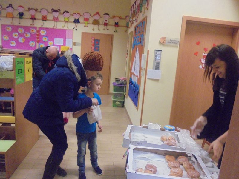 W cukierniach wyboru są pączki z marmoladą, budyniem lub adwokatem. Mogą być polane lukrem lub posypane cukrem pudrem. Jednak – jak co roku mówią nam cukiernicy – najwięcej osób wybiera te tradycyjne – z marmoladą. Zazwyczaj nikt nie kupuje tylko jednego pączka, a co najmniej kilka. Podobnie było także w Przedszkolu Planeta Zdrowia przy ulicy Kruczej dzisiejszego ranka.