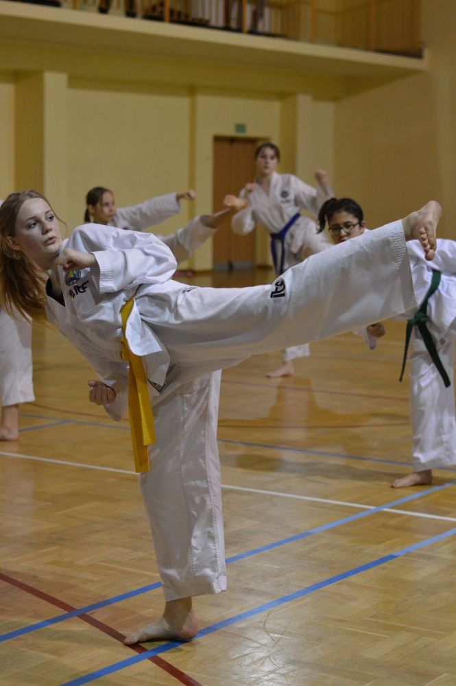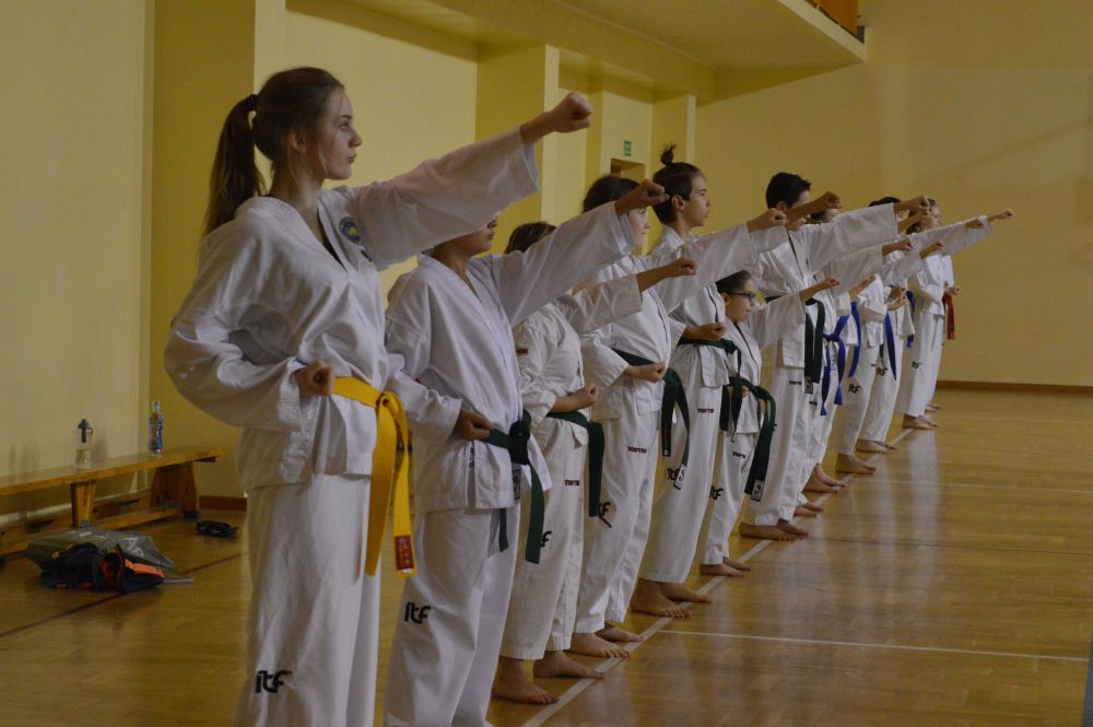W sali gimnastycznej I Liceum Ogólnokształcącego w Lubinie, odbyła się pierwsza sesja egzaminacyjna na uczniowskie stopnie szkoleniowe Taekwon-do ITF w roku szkolnym 2019/2020.