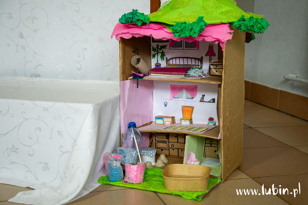 Powstały małe cudeńka – m.in. wózek i domek dla lalek, teatr z laleczkami, rakieta czy czołg. Dzieci puściły wodze fantazji, sięgając po materiały z recyklingu, czyli np. stare butelki i papiery. Udowodniły, że z pozornie zużytych już materiałów można stworzyć zupełnie coś nowego.