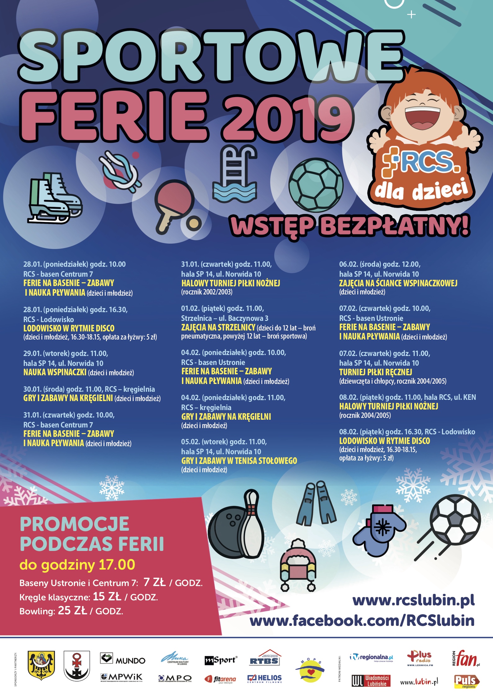 To nie koniec imprez RCS, przygotowanych w tym tygodniu. Dziś, tj. 30 stycznia organizatorzy sportowych zmagań zapraszają na kręgielnie na gry i zabawy. Start o godz. 11.00. Do dyspozycji będą: cztery tory kręgli klasycznych, dwa tory do bowlingu, piłkarzyki oraz bilard. Wszyscy bawiący się z nami zostaną obdarowani słodyczami. Wstęp jest wolny. Organizator przypomina tylko o konieczności zabrania ze sobą obuwa zmiennego.