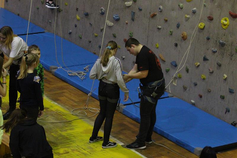 Trudno zliczyć dzieci, które praktycznie przez cały czas trwania sportowej imprezy przygotowanej w ramach Ferii Zimowych 2020 z RCS, pojawiały się w szkole przy ul. Cypriana Kamila Norwida 10. Do godziny 13.00 każdy miał szansę pokonać trasy przygotowane na ściance wspinaczkowej, albo postrzelać z łuku.